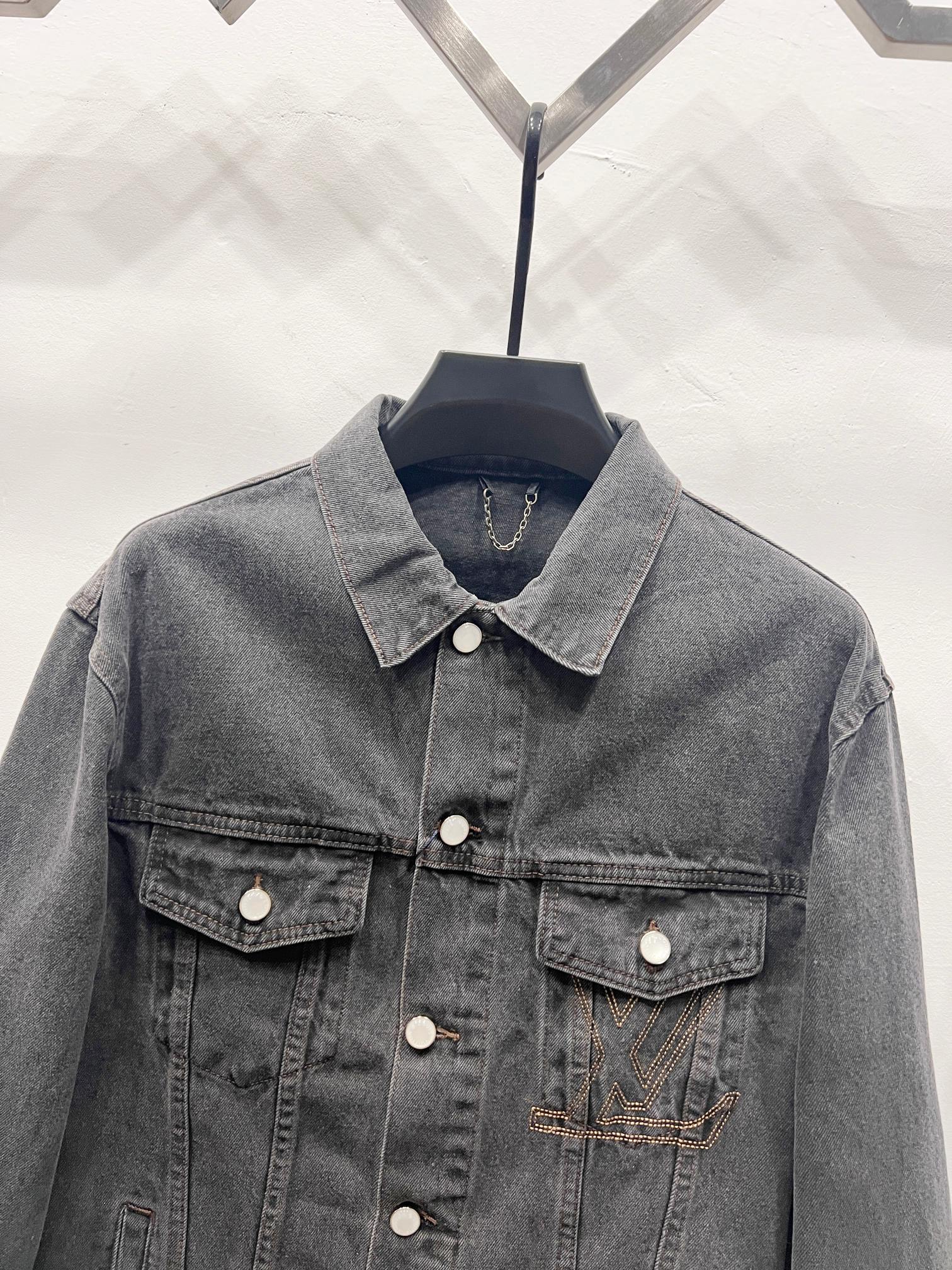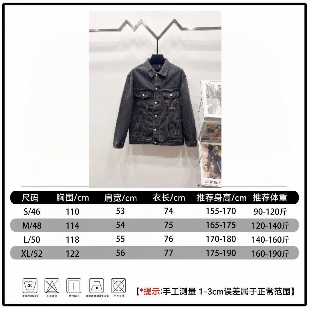 款号 A005 驴家2025新款重工口袋绣花logo情侣款牛仔外套 高版本高版本 原版定制五金辅料 网红明星同款高级牛仔面料 定制珍珠纽扣 口袋重工绣花工艺 全身水洗设计 很高档 很有范儿 面料手感非常舒服 超级百搭好看的一款牛仔外套 三标齐全 男女同款 人手必备款 颜色 黑色 尺码 S XL