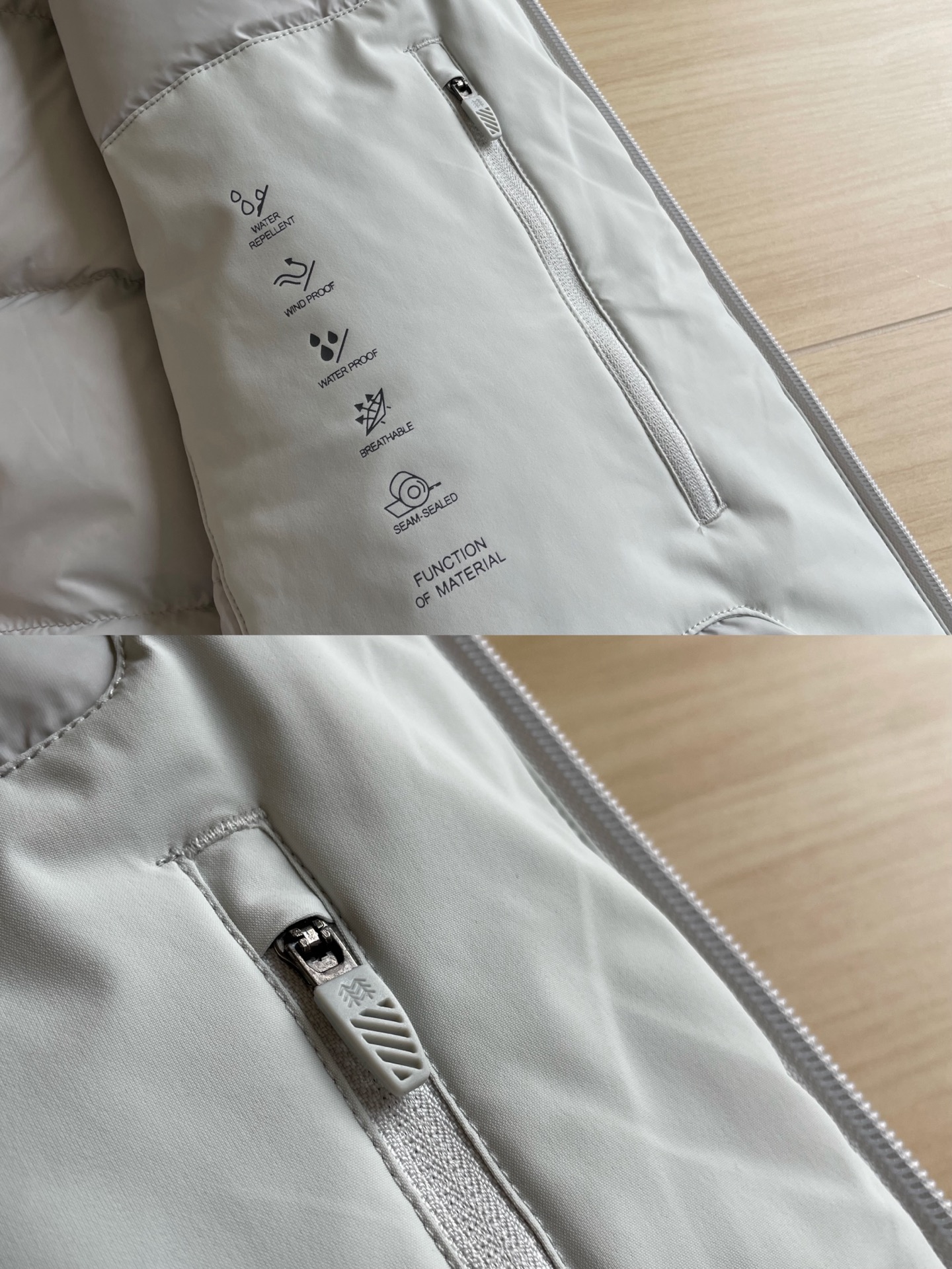 多口袋设计 胸前口袋配有隐形拉链 结合袋口贴合和3M反光印花 外观精致平整两侧插袋配有防水拉链 可安全储存小物件
