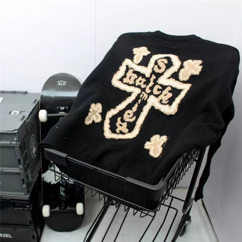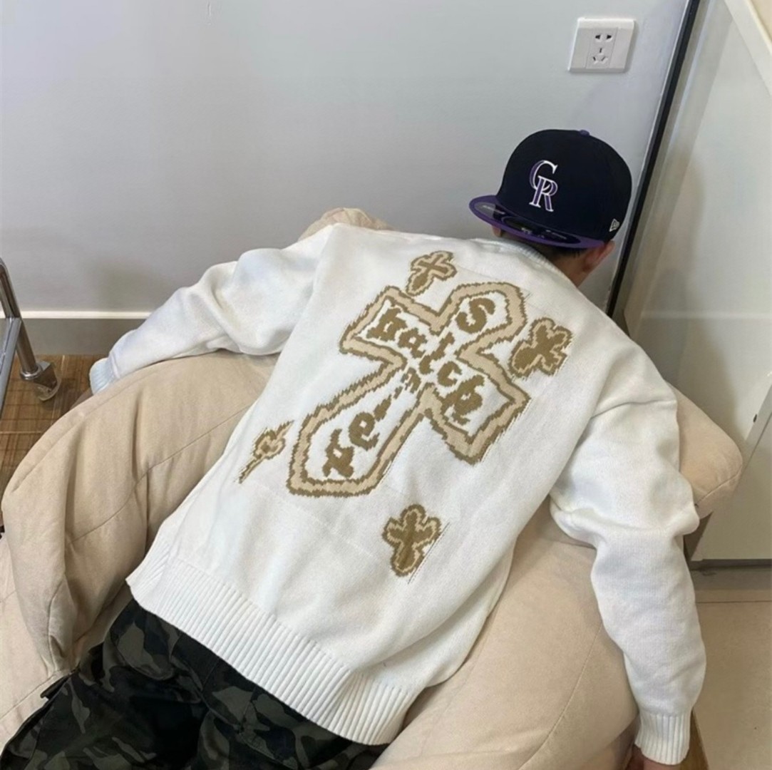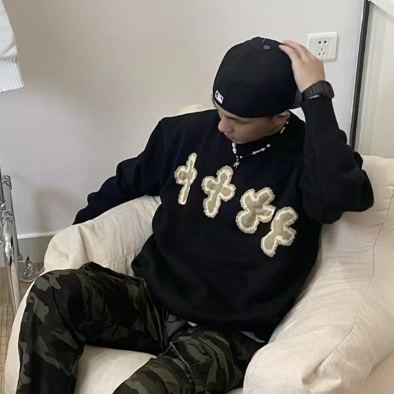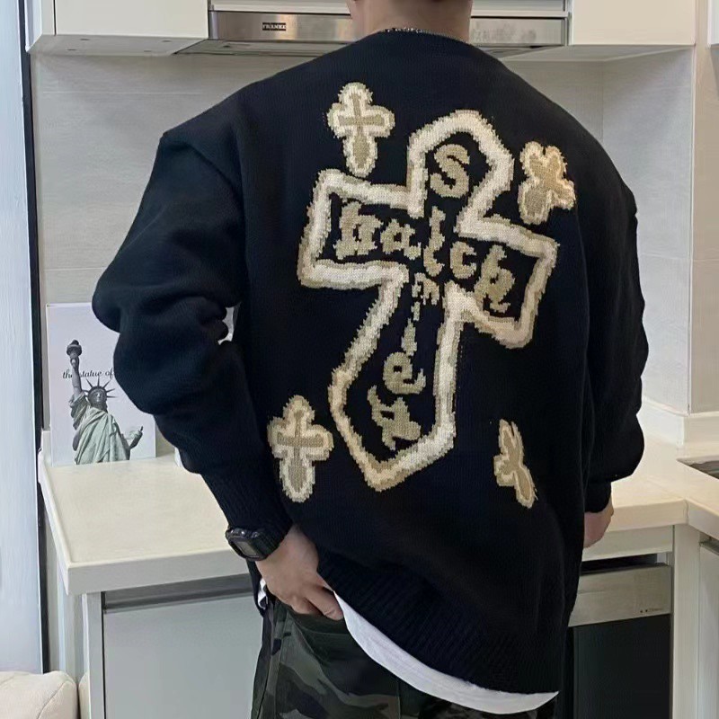Chrome Hearts 克罗心 美式复古十字架圆领套头针织衫毛衣上衣 男女同款