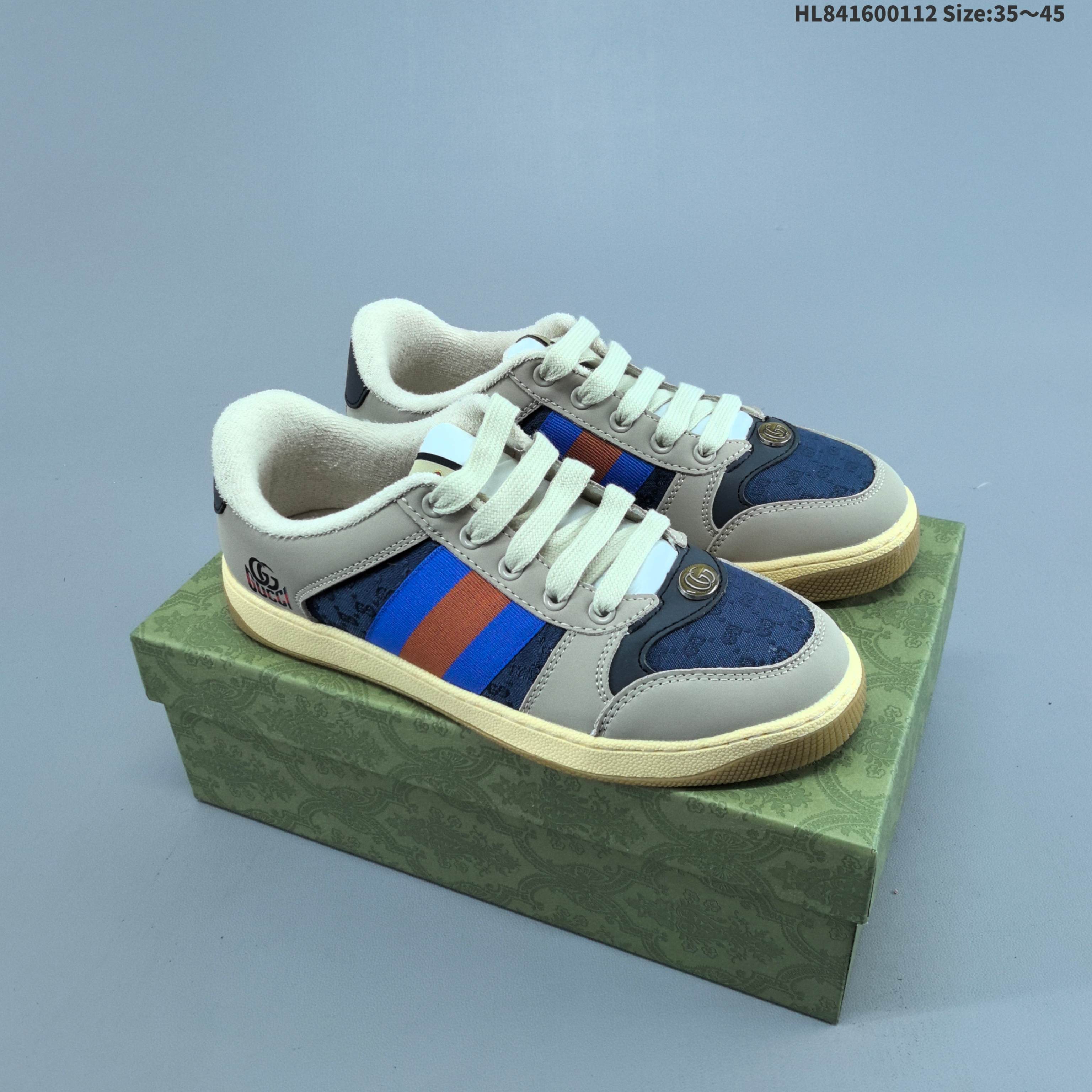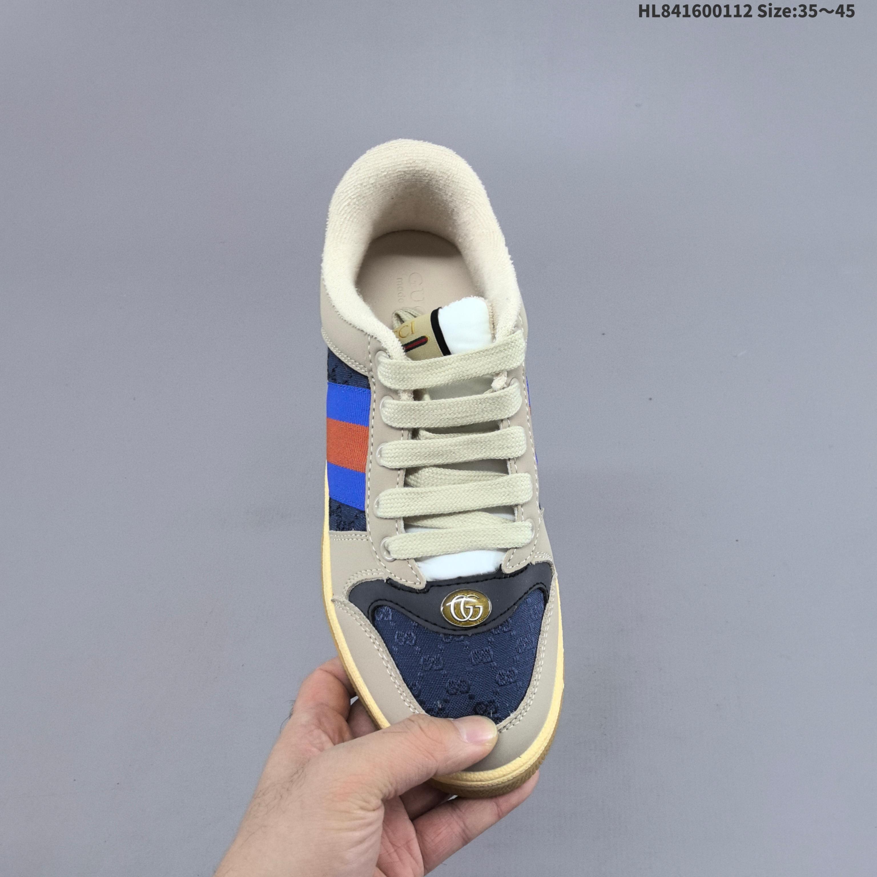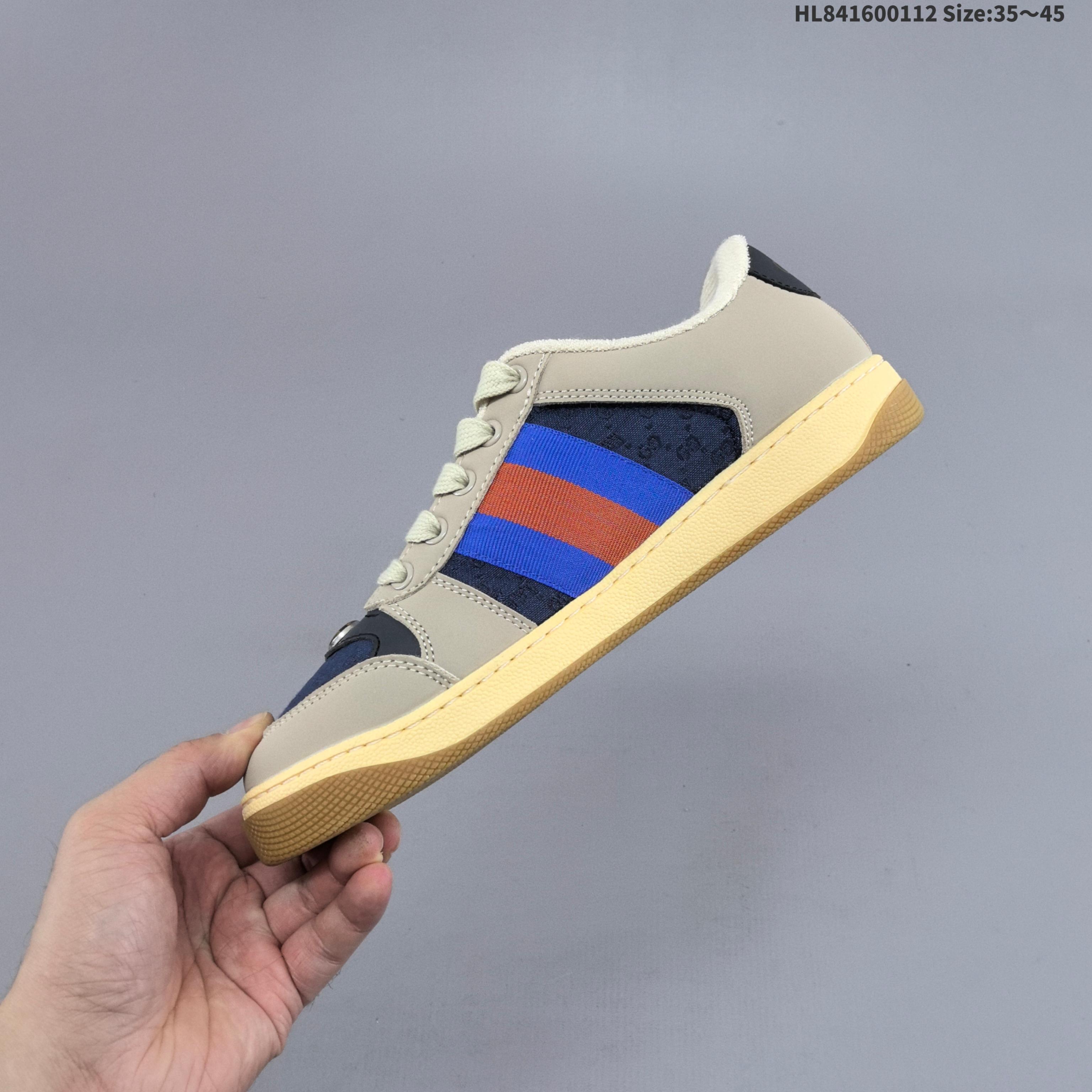 全新配色出货 Gucci Distressed Screener sneaker古驰小脏鞋系列 经典原型复古百搭做旧老爹板鞋 复古学院风 怀旧版 原版做旧 HL841600112 Size 35 45