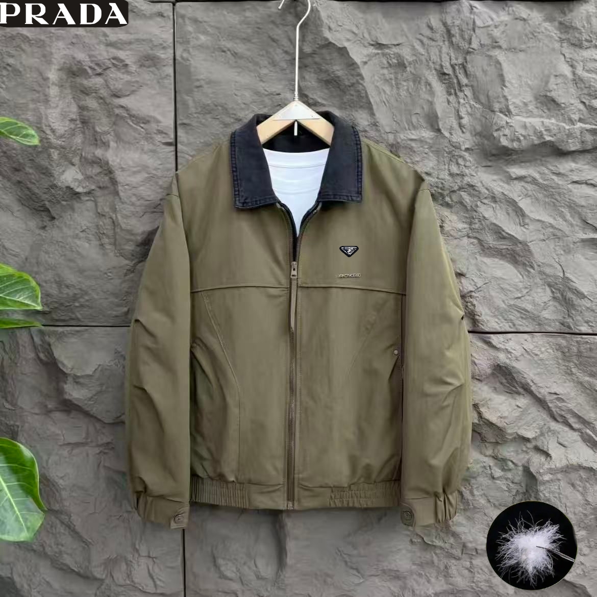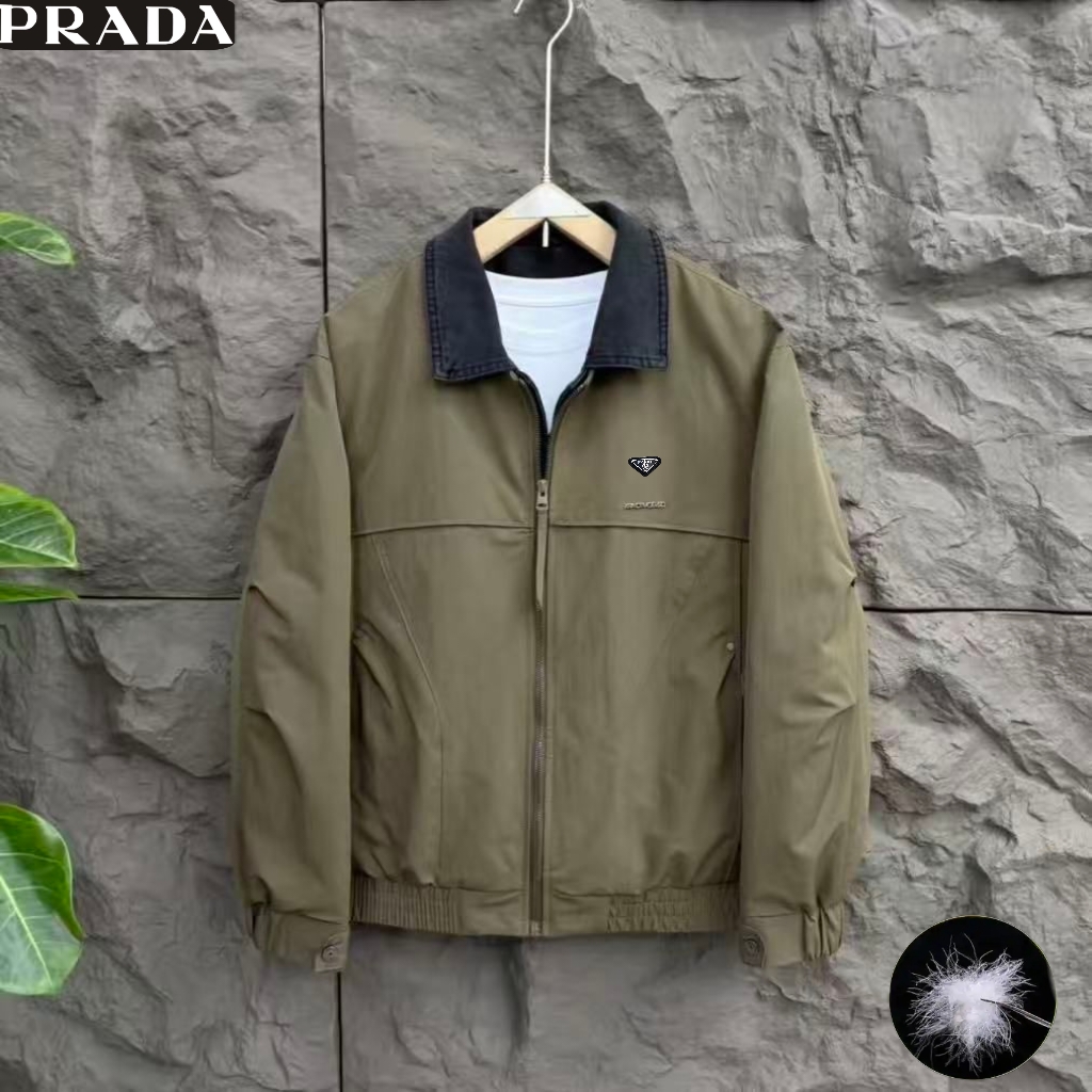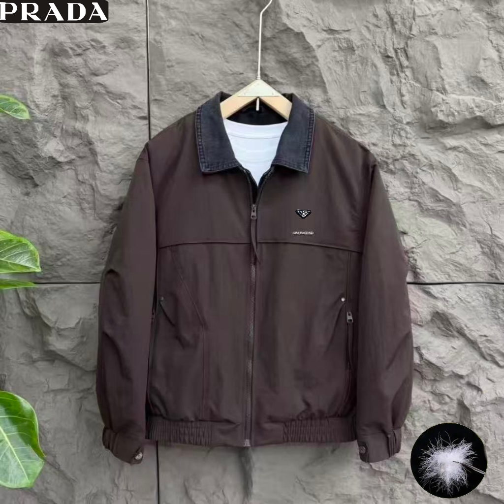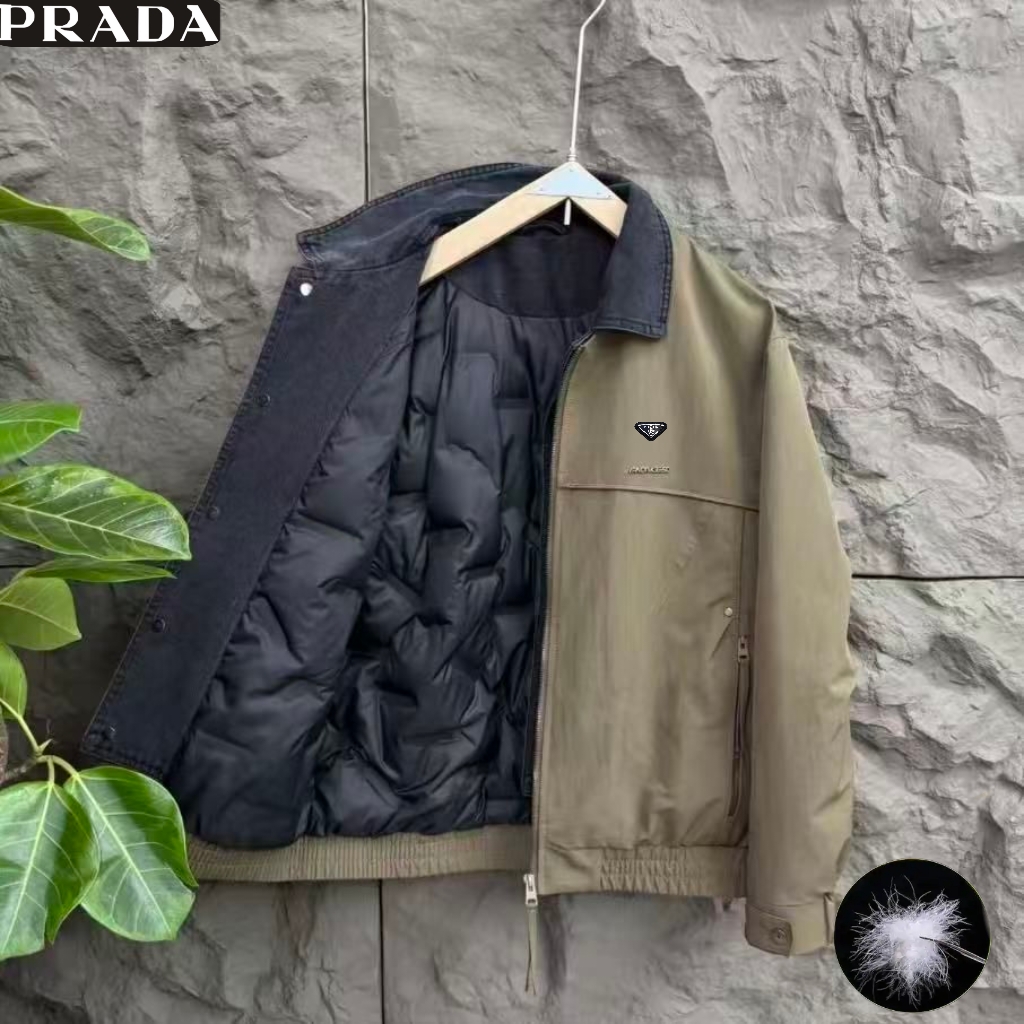 普拉达Prada冬季新款 男士高级感撞色拼接领50绒3色休闲保暖工装羽绒服 男士羽绒外套上衣