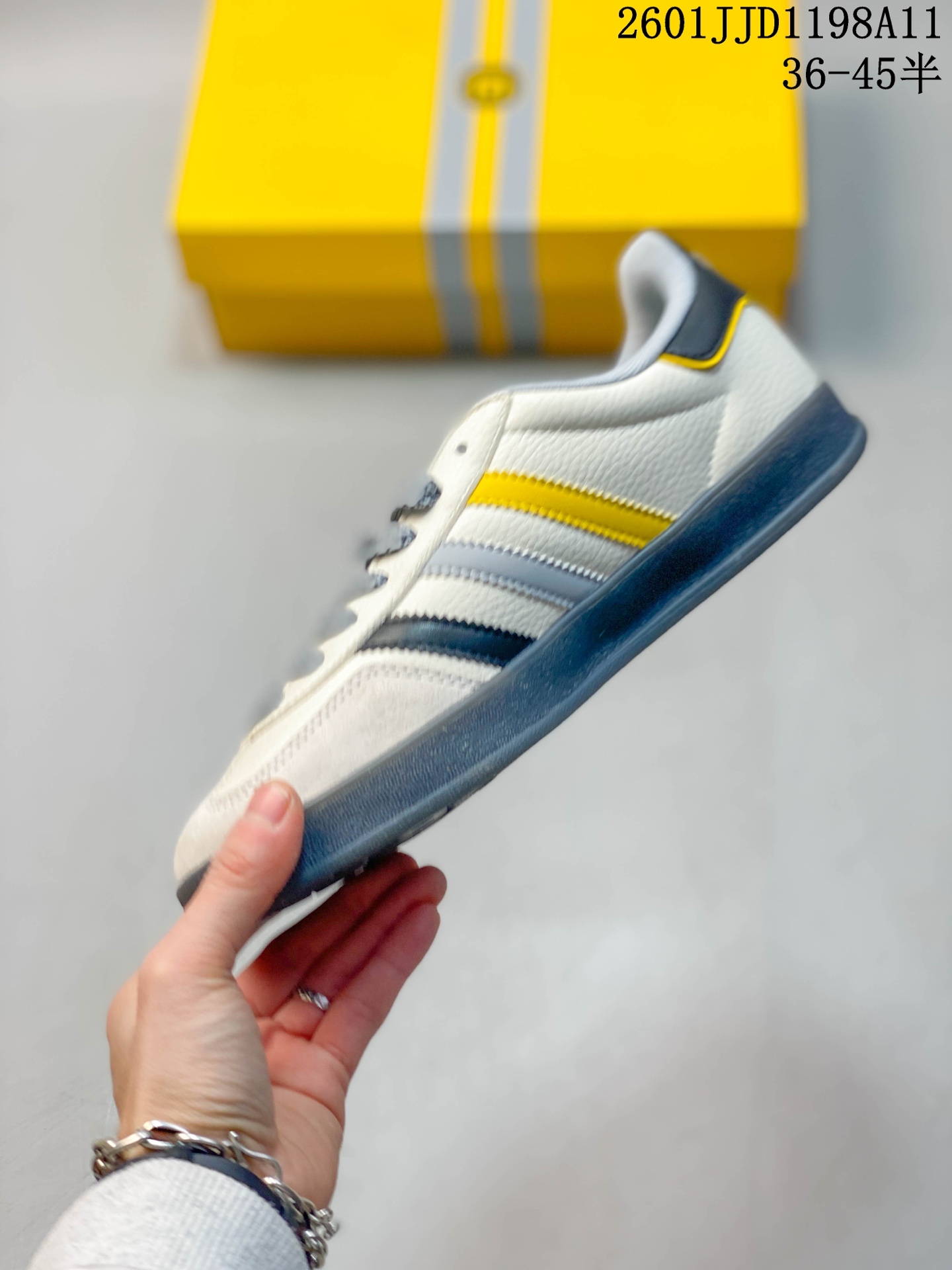 以柔软的皮革鞋面搭配耐磨橡胶外底 展现出复古与现代的融合 鞋面采用细腻纹理设计 搭配三条杠 尽显品牌经典 无论是运动场还是街头 这双鞋都能轻松驾驭