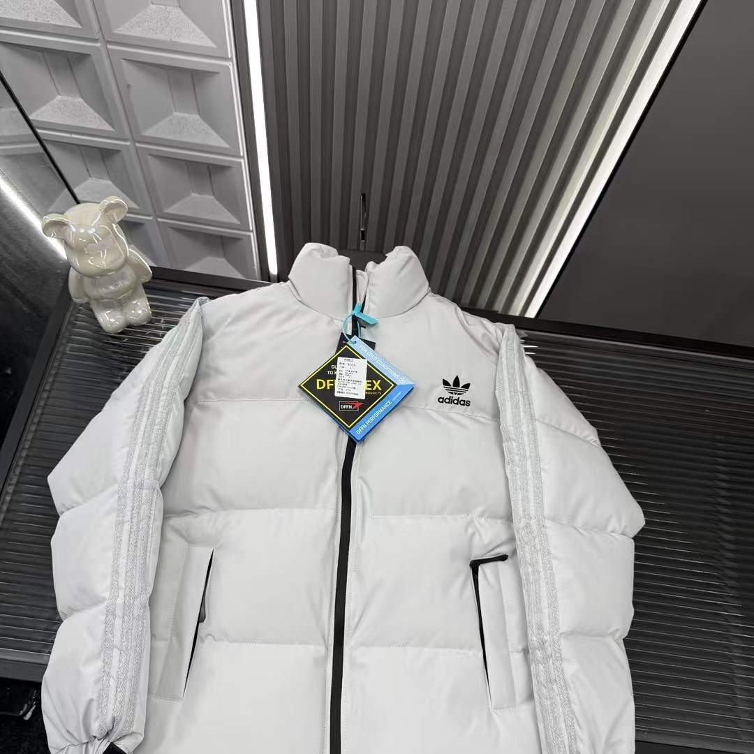 秋冬爆款热销款推荐AD阿迪达斯羽绒棉服 经典三道杠 胸前刺绣三叶草Logo 三标齐全官网一致 放大看细节原相机实物拍摄 颜色 白色 尺码 L 4xl L 80 105斤 XL 105 120斤 2XL 120 140斤 3XL 140 160斤 4XL 160 180斤