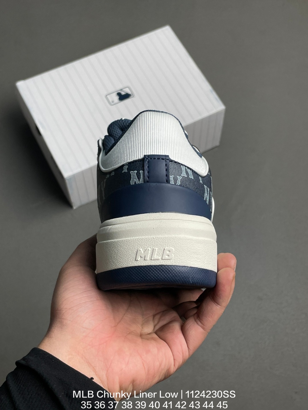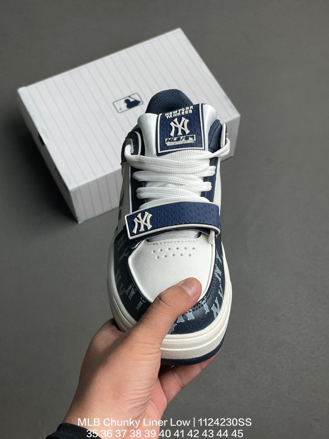 MLB 韩国F F旗下运动品牌 全新独立5cm厘米外增高轻质发泡中底组合耐磨橡胶外底片学院穿搭爆款 Korea韩国限定 联乘美国榄球洋基队New York Yankees x MLB Chunky Liner Low 学长鞋系列低帮老爹风轻量增高厚底百搭休闲运动板鞋