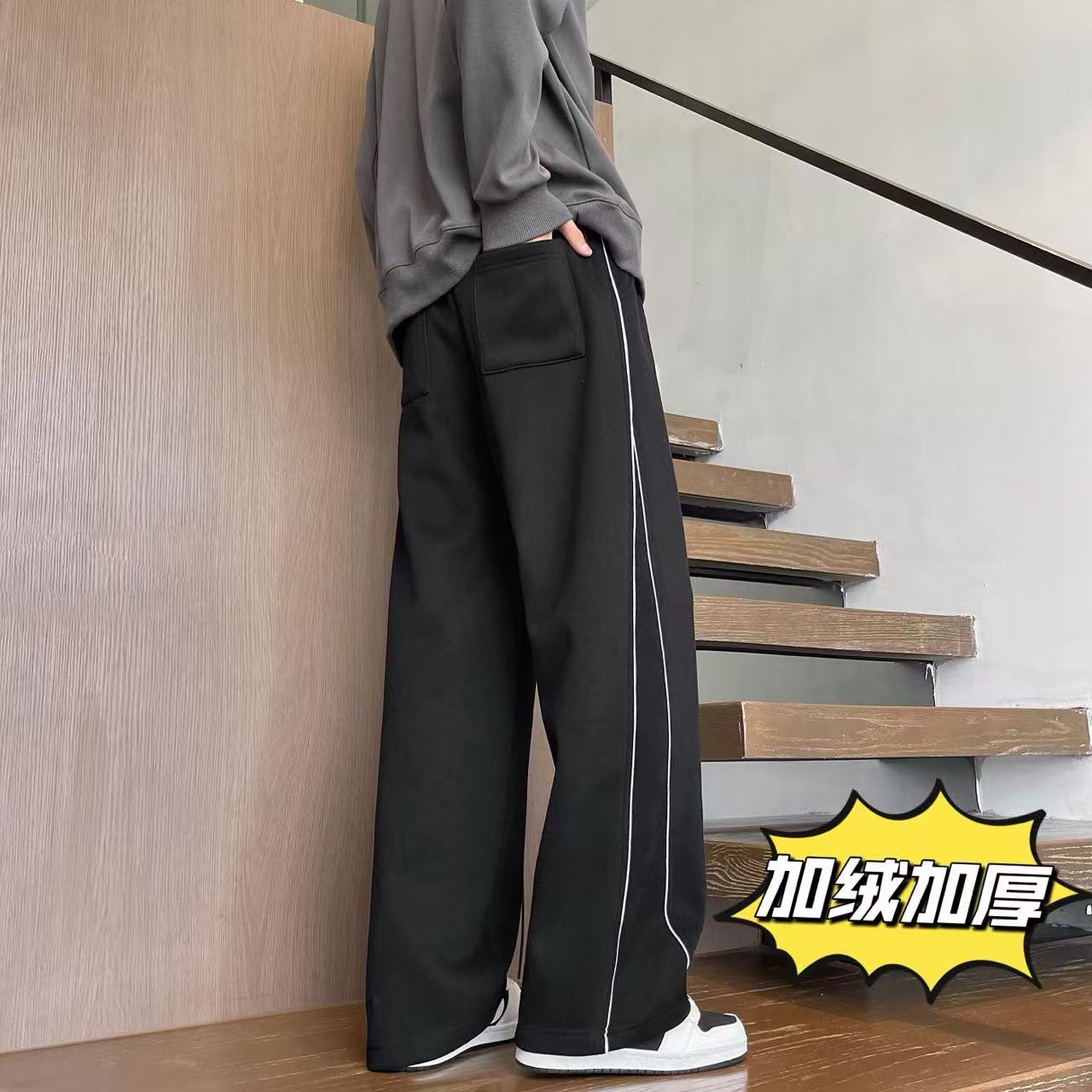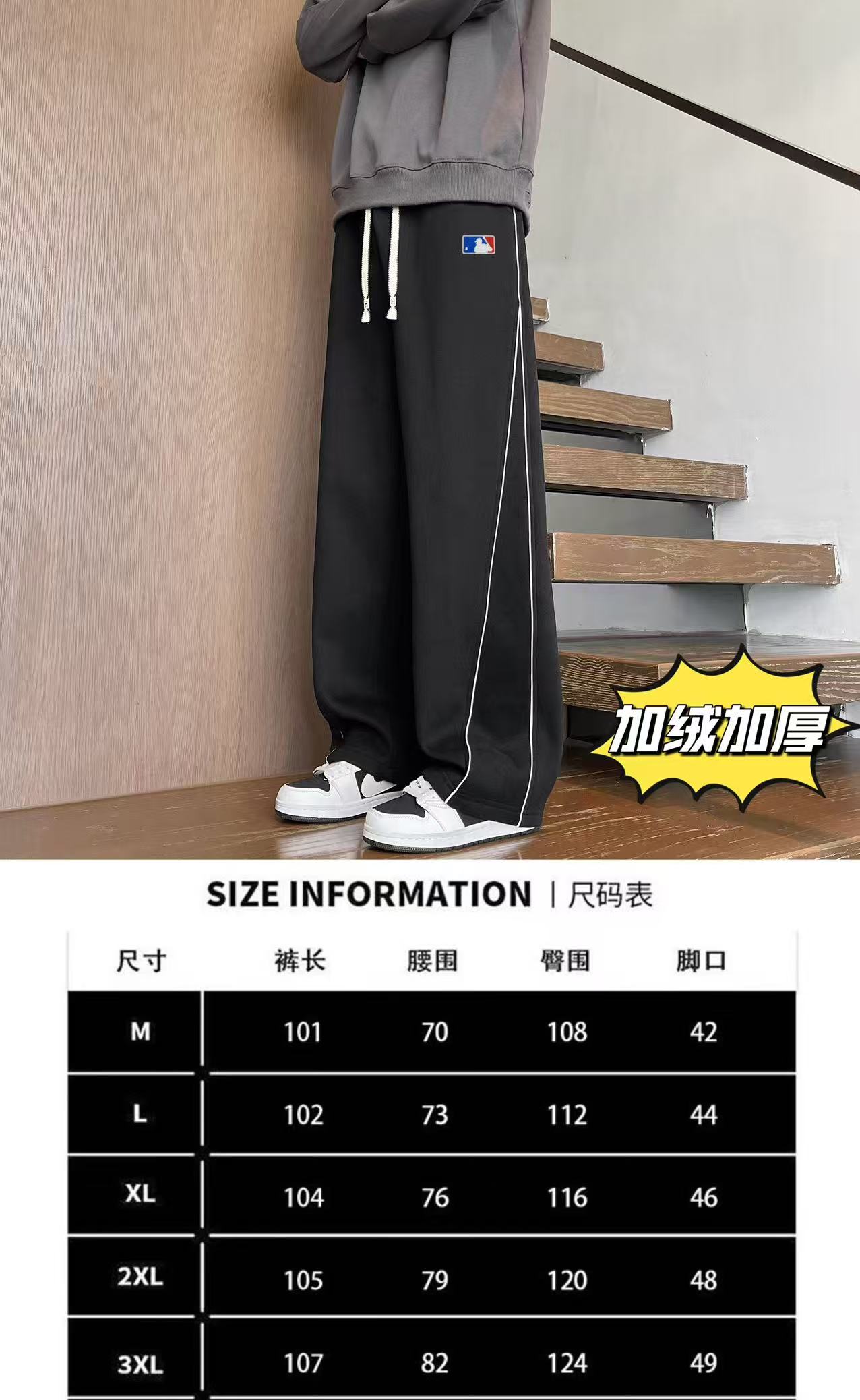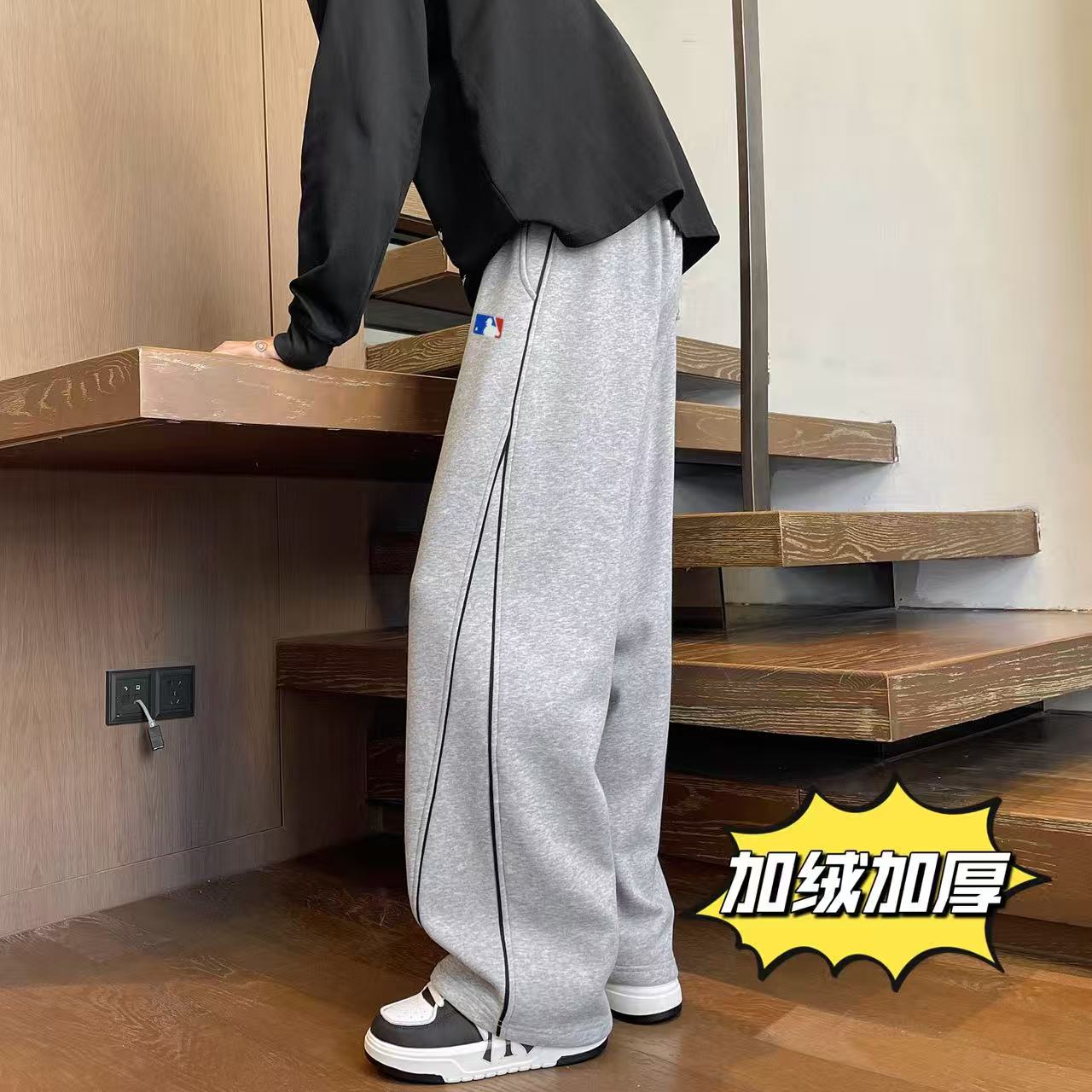 MLB NY洋基队 冬季 加绒加厚 不规则条纹拼接运动卫裤休闲裤长裤 男女同款