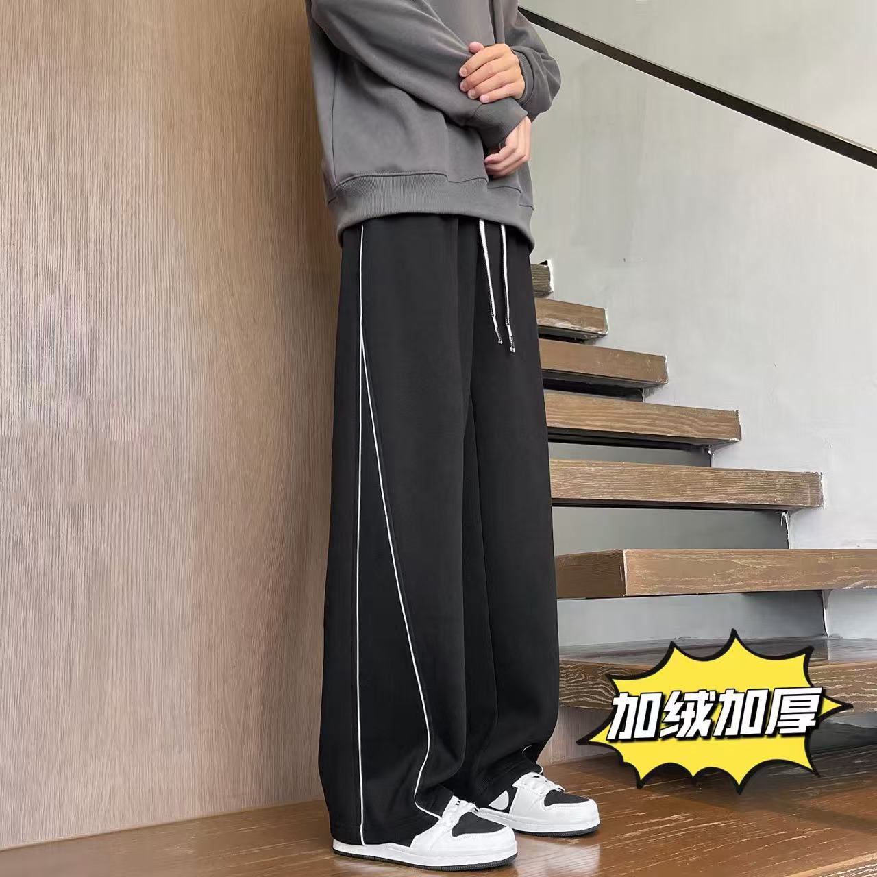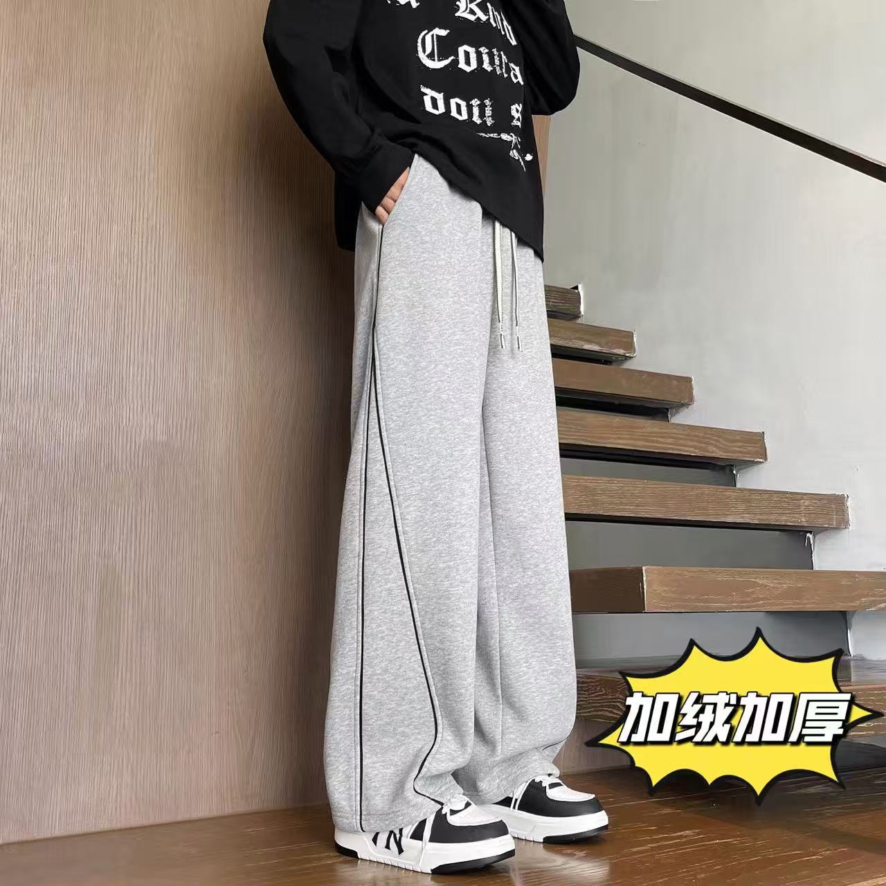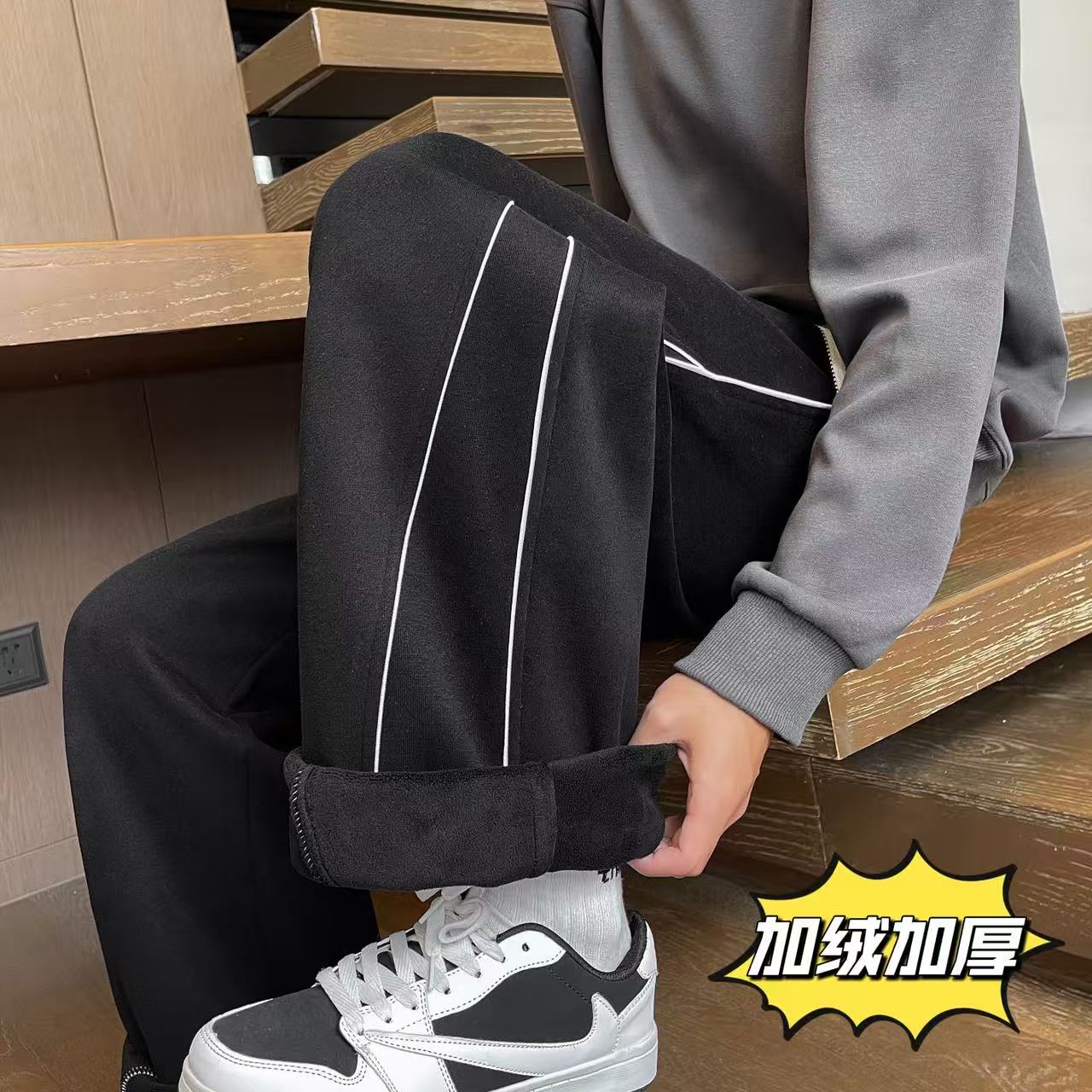 MLB NY洋基队 冬季 加绒加厚 不规则条纹拼接运动卫裤休闲裤长裤 男女同款