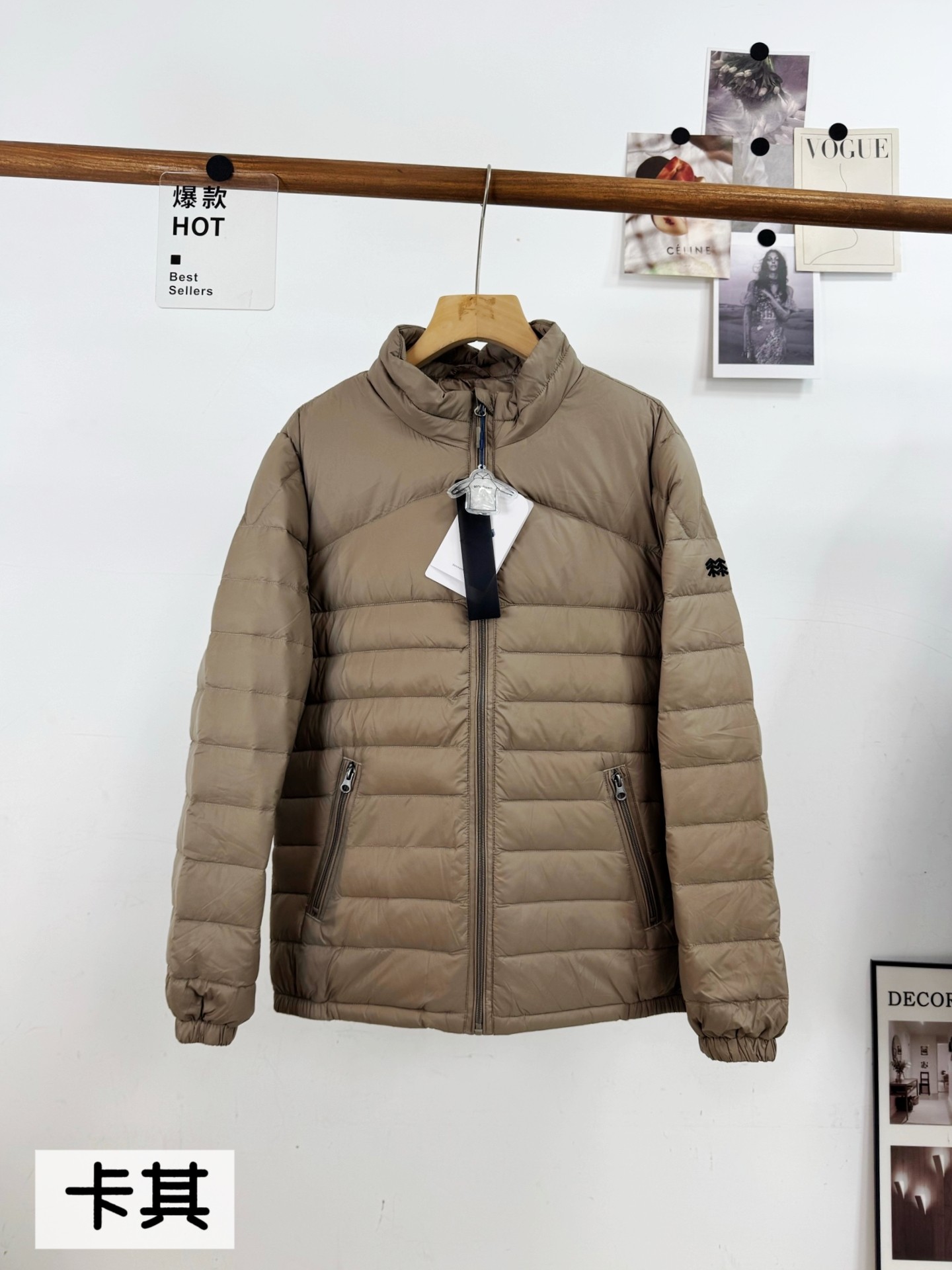 卡其棕复古质感 经典黑酷飒百搭 藏青蓝沉稳大气 三种色系适配不同风格 轻薄充绒设计 告别冬日臃肿 叠穿内搭毫无压力 立领版型利落有型 拉链口袋兼顾实用与美观 手臂处的品牌标识细节拉满