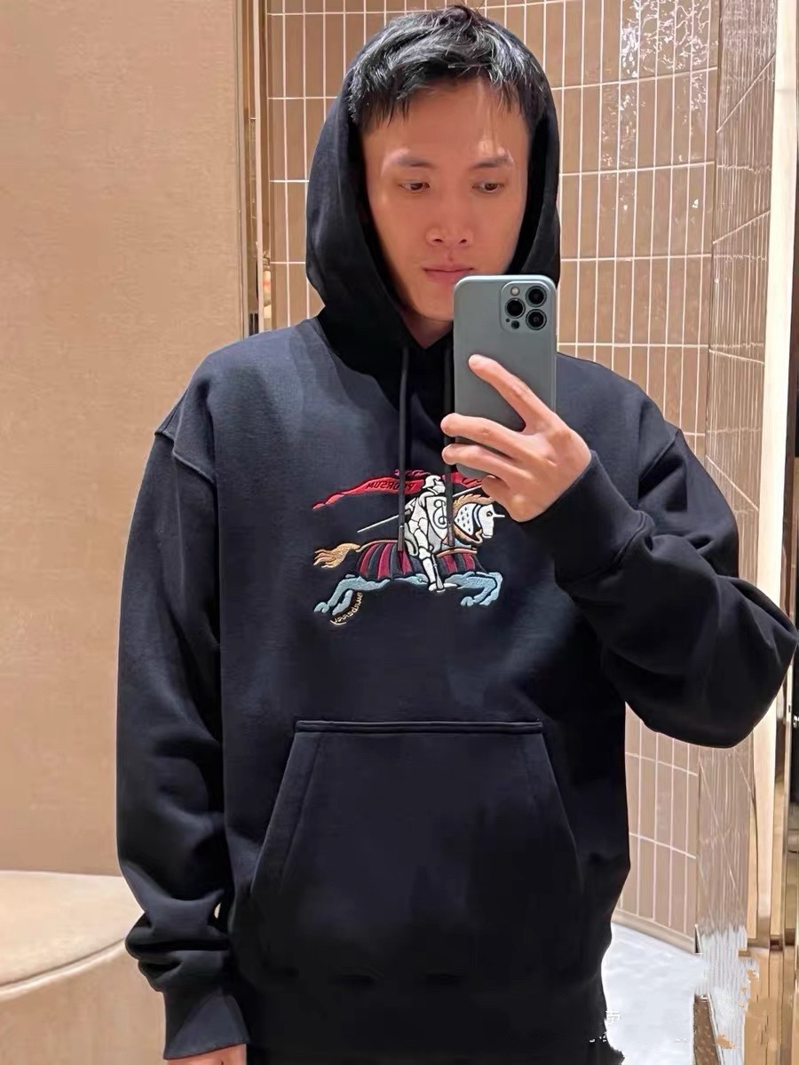 高品质 品名 Burberry 巴宝莉 新款彩色马术骑士徽标发泡植绒印花连帽宽松休闲卫衣 版型 宽松版 面料 纯棉双面面料 颜色 黑色 尺码M L XL 胸围 衣长 M 118 72 L 122 73 XL 126 74 手工測量存在1 2cm誤差 僅供參考