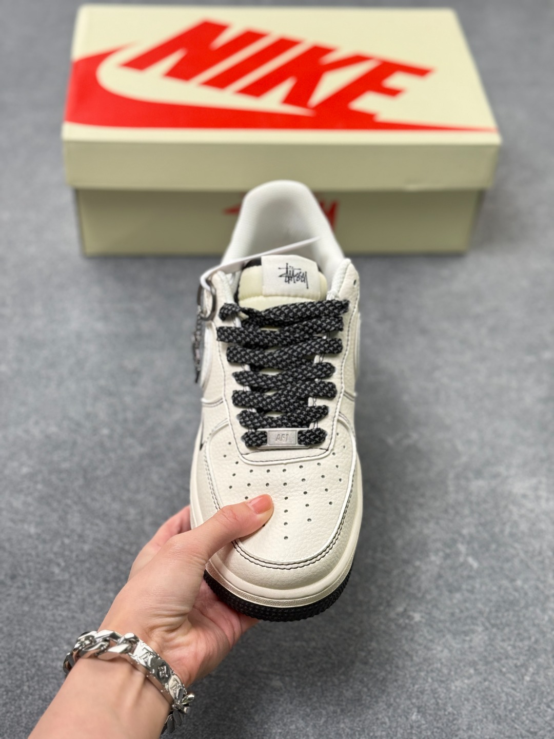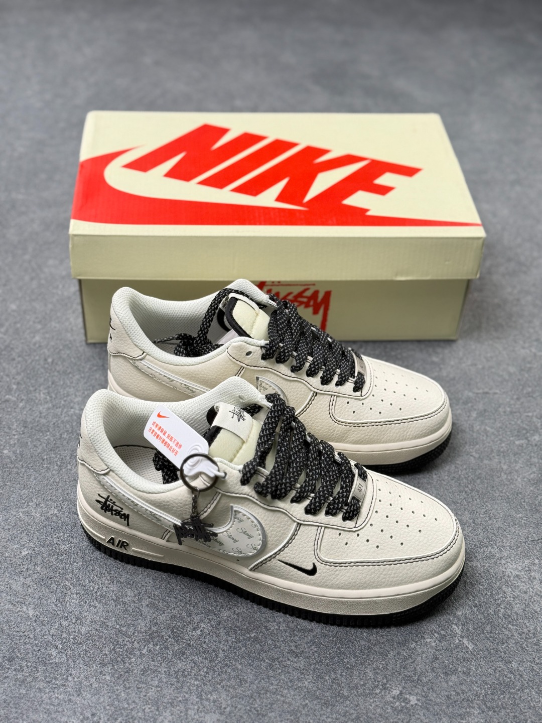 海外限量发售 公司级NIke Air Force 1 07 Low 斯图西联名 米黑英文花勾 空军一号 低帮 运动鞋 休闲鞋 折边针车 工艺难度大 原楦头原纸板 原装鞋盒 定制五金配件 内置全掌气垫 原厂鞋底