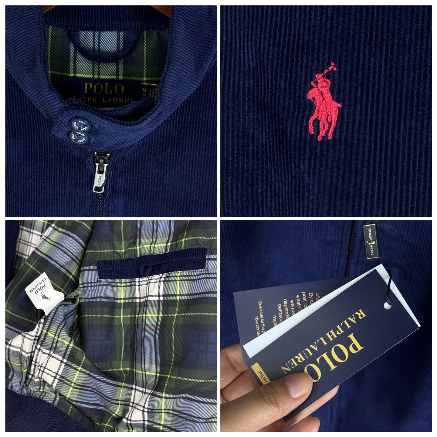 面料采用定制高克重灯芯绒 上身挺拔有型 内里采用定制苏格兰式格纹里布 内里下摆有口袋 胸口绣花采用进口田岛绣花机 刺绣小马logo饱满立体 搭配纯色整体低调大气 袖口和下摆采用松紧螺纹 整件衣服做工走线工整严密 男生女生都可以轻松驾驭 领标上的二维码可直接扫码进官网