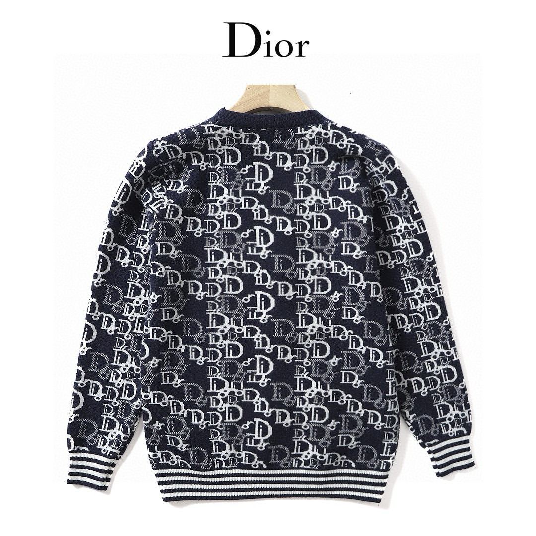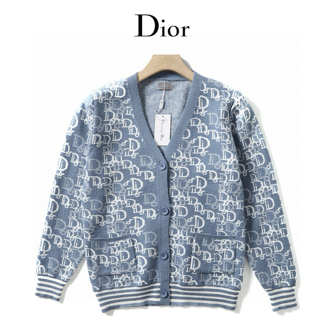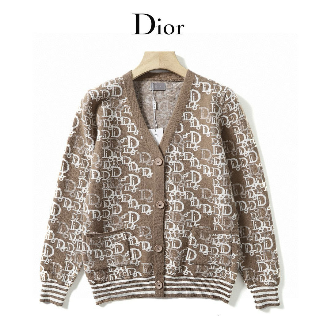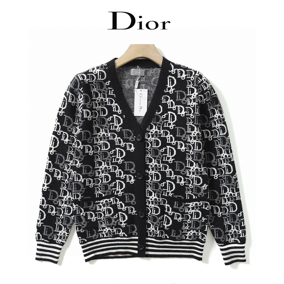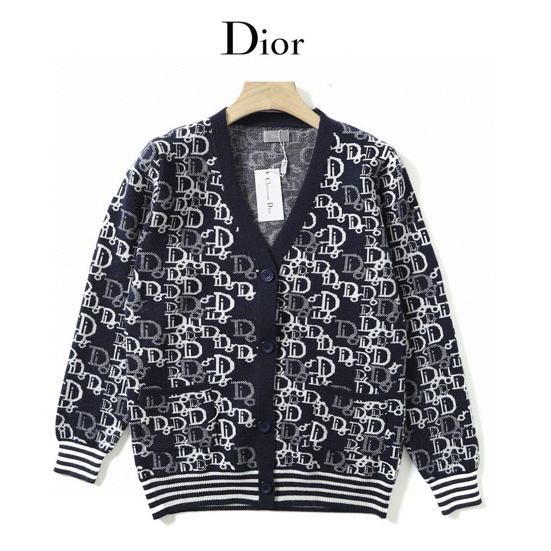 Dior家 秋冬新款欧美提花图案金典老花 针织羊毛混纺时尚粗线毛衣V领开衫 情侣款开衫毛衣外套这件毛衣外套同系列的套头毛衣买的人更多 但是这款很特别 搭配情侣款出街回头率超高 两色纱线混纺 很显白显气质 不知道是Dior家独有的优雅魅力 还是设计师鬼才的配色