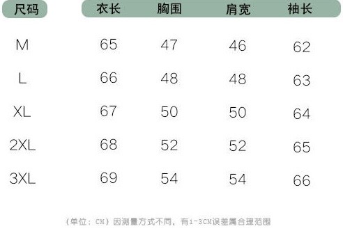 M肩宽46胸围92衣长65袖长62