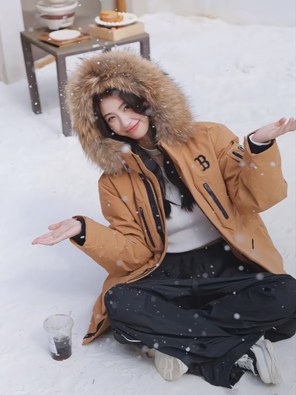柔软真皮草毛领 大大的一整根貉子毛领 不仅挡风保暖 更加的显奢华质感 一眼贵价羽绒服