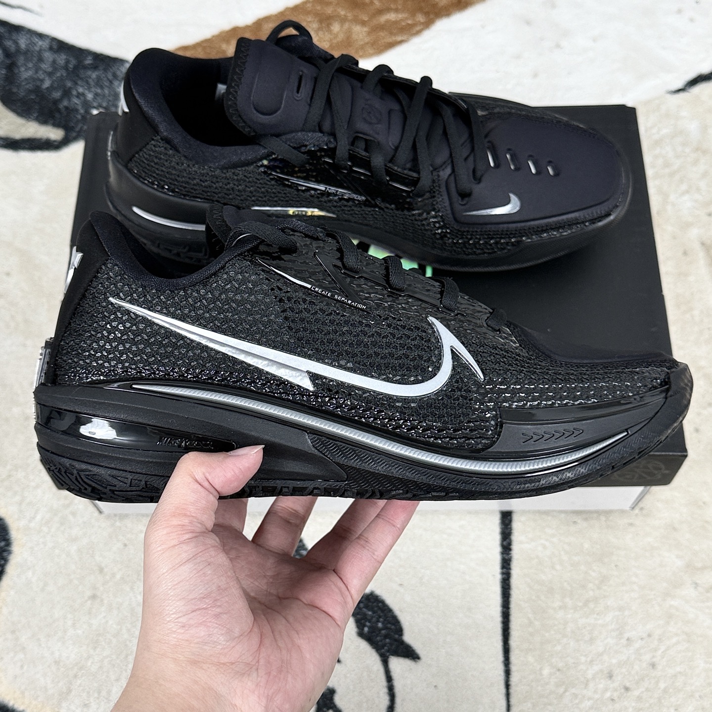 Nike Air Zoom G T Cut 1篮球鞋外观设计时尚且富有运动感 鞋面采用Hyperfuse混合材质 轻量且透气 同时通过TPU丝线编织增强鞋面刚性 既保证了鞋子的美观性 又提升了鞋子的耐用性和支撑性 GT Cut 1采用全掌React鞋垫 全掌切槽Zoom气垫 后掌马蹄形Zoom的 三明治 中底配置 这种配置提供了卓越的缓震性能和回弹效果 React鞋垫提供稳定缓震 Zoom气垫则通过物理切割降低重心 提升贴地感 后掌的马蹄形Zoom进一步强化冲击吸收 鞋面材质柔软舒适 包裹感超强 前掌外侧的双层TPU弯折引导槽既贴合脚部发力点 又避免过度形变导致的支撑不足 同时 鞋楦设计偏向欧洲脚型 前掌略宽 但通过太空棉内衬和动态飞线实现 瘦脚不空 宽脚不挤 的舒适穿着体验 GT Cut 1的缓震配置堪称前无古人后无来者 穿上它 能在任何场地上都能感受到充足的回弹 而且不衰减 无论是突破还是起跳落地 都能得到充分的缓震保护 鞋子整体把控能力非常强 包裹性到位 且随着穿着时间的推移 鞋子逐渐适应脚型 低帮设计搭配动态飞线 使得鞋子在保持包裹性的同时 也具备了出色的灵活性 鞋底的抓地力超强 无论是室内木地板还是室外橡胶场地 都能提供稳定的表现 防侧翻稳定结构有效减少崴脚风险 让球员在激烈对抗中也能保持稳健