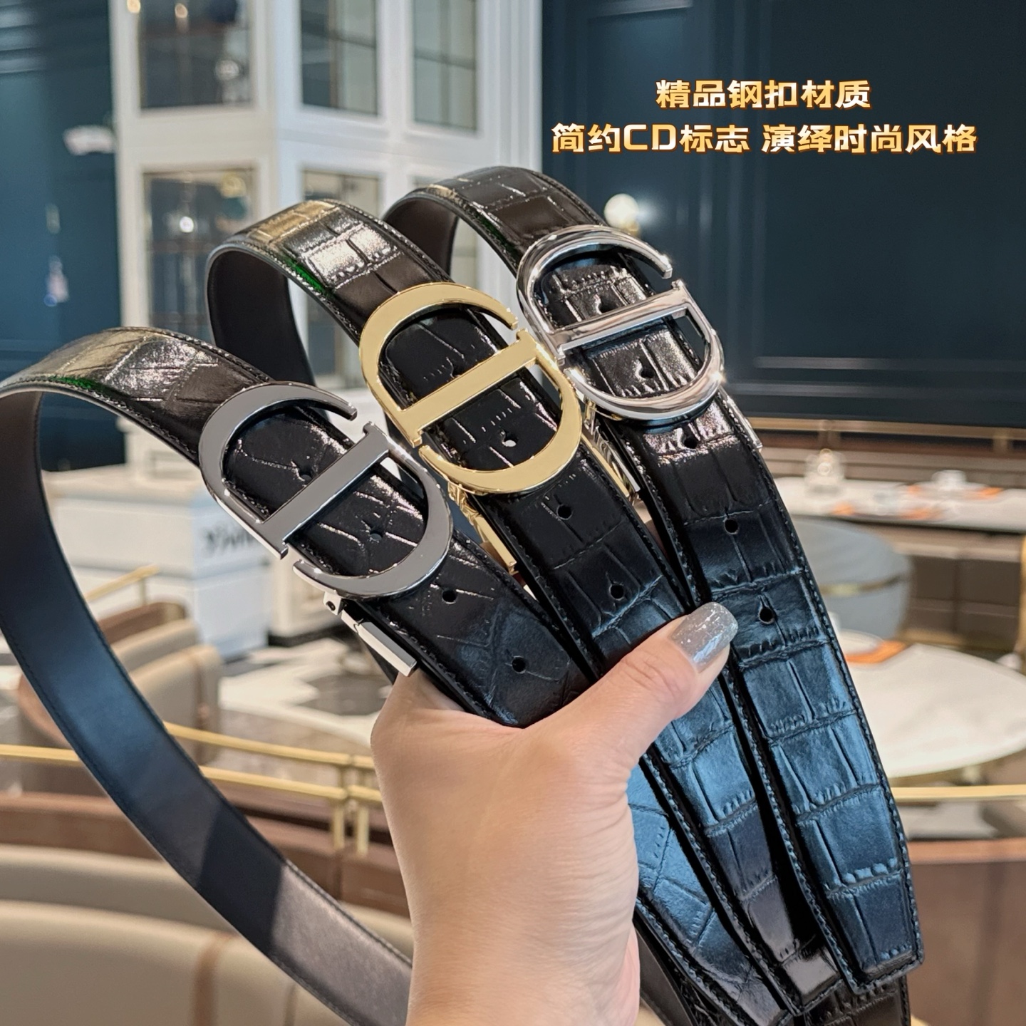 礼物迪奥这款皮带采用奢华的牛皮材质 独具原创个性且精致不凡 Gancini金属扣饰的分层构造打造富有趣致的3D立体效果 手工精制而成 打造奢华却又不失现代感的外观 双色搭配 双面可用 宽度 3 5CM长度可调节 达到量身定制般的修身效果