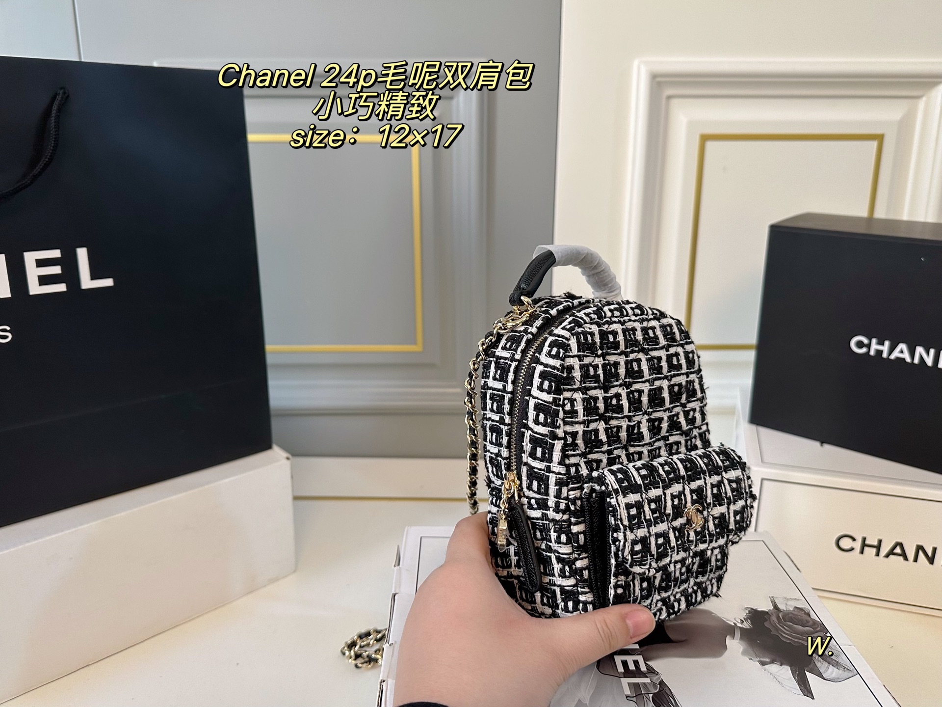CHANEL香奈儿24p新款毛呢mini双肩包