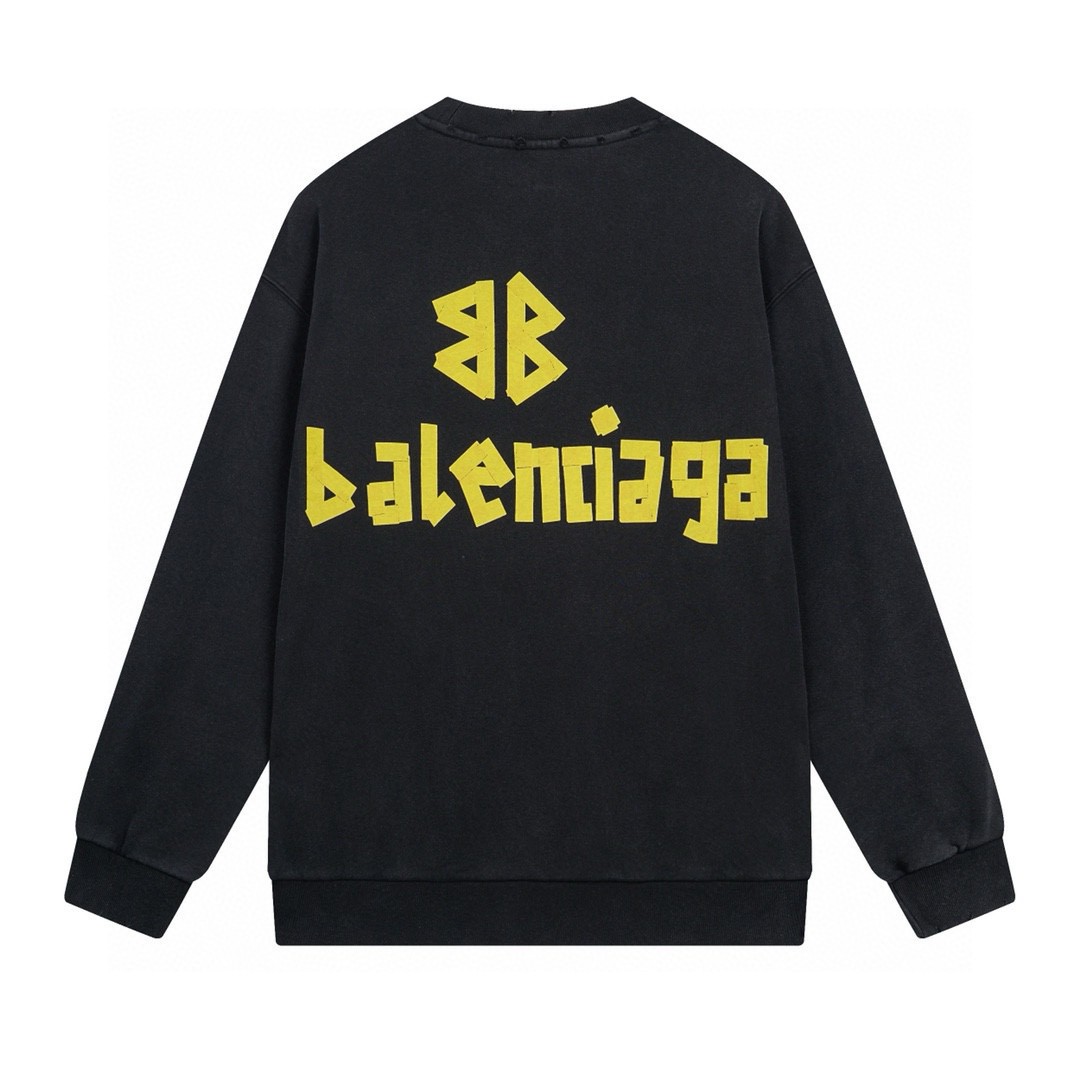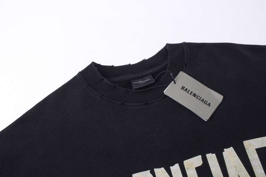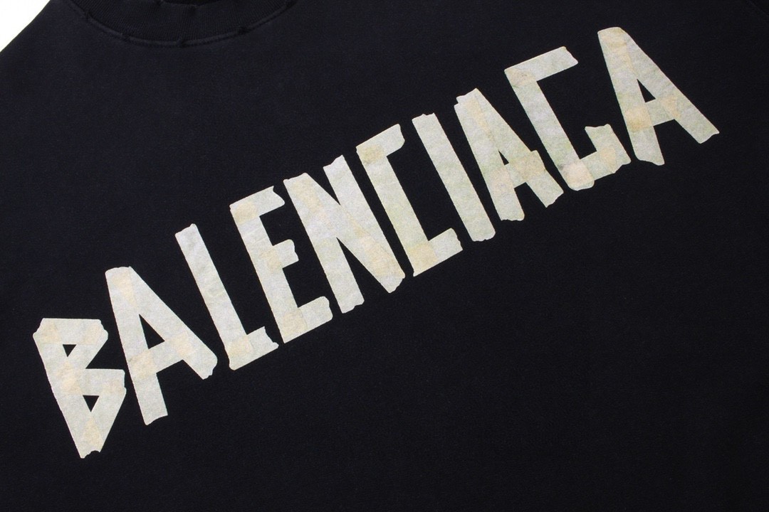 BALENCIAGA 巴黎世家2025 SS 经典胶带拉浆印花水洗磨烂圆领卫衣