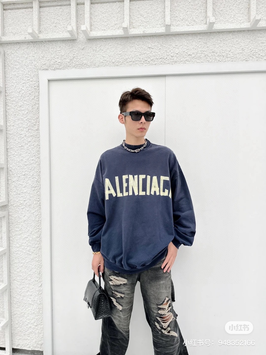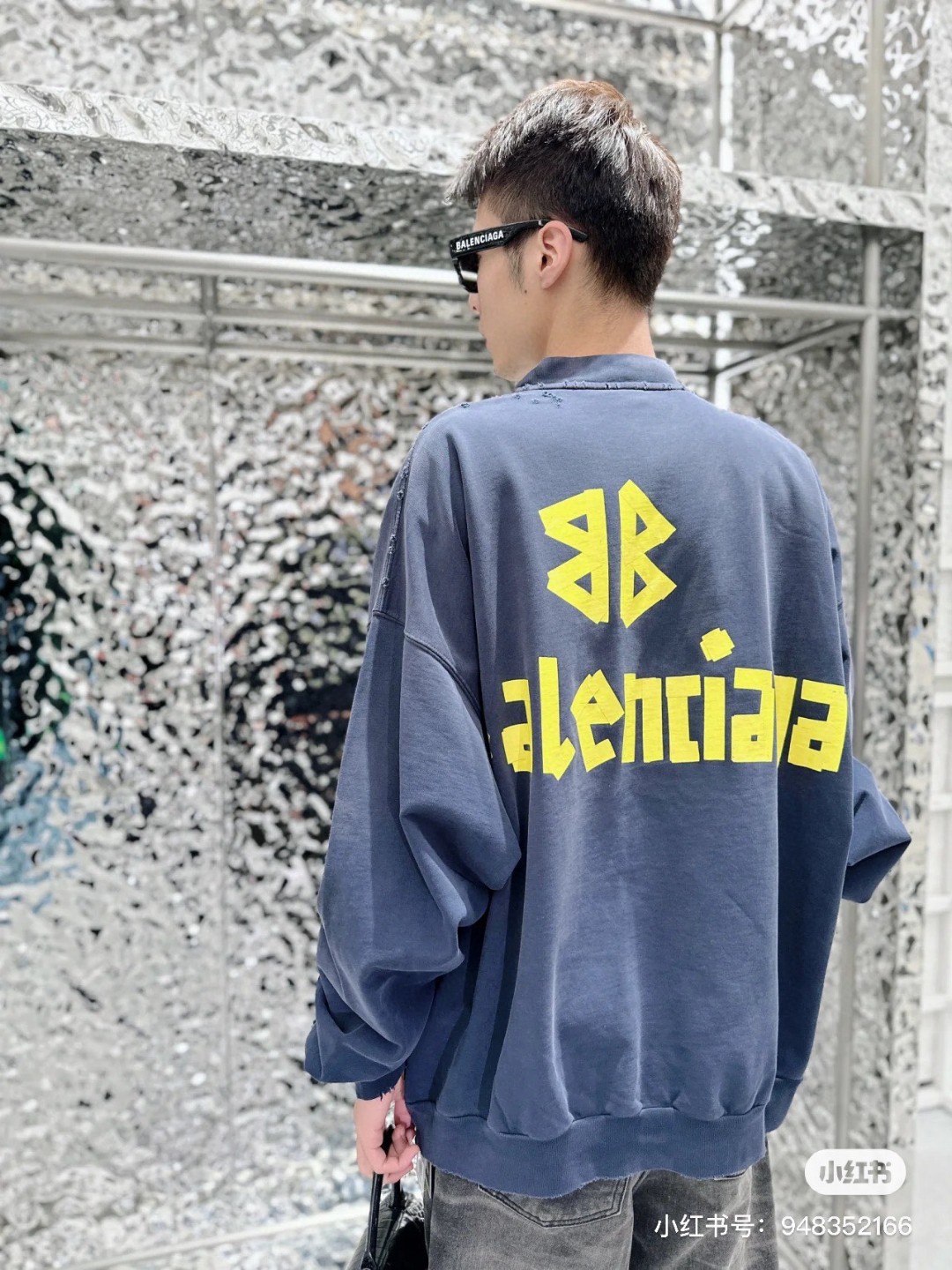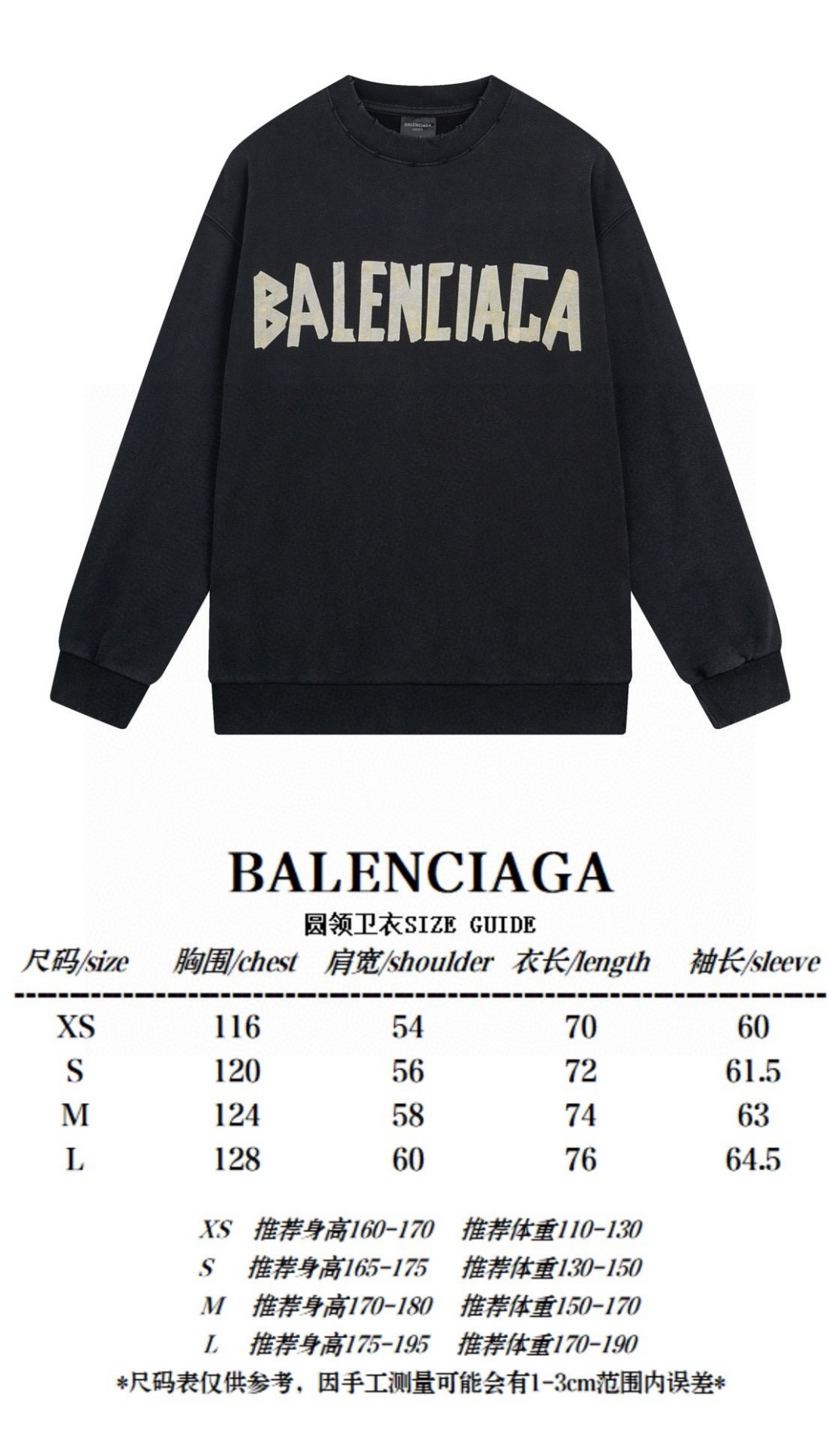 BALENCIAGA 巴黎世家2025 SS 经典胶带拉浆印花水洗磨烂圆领卫衣