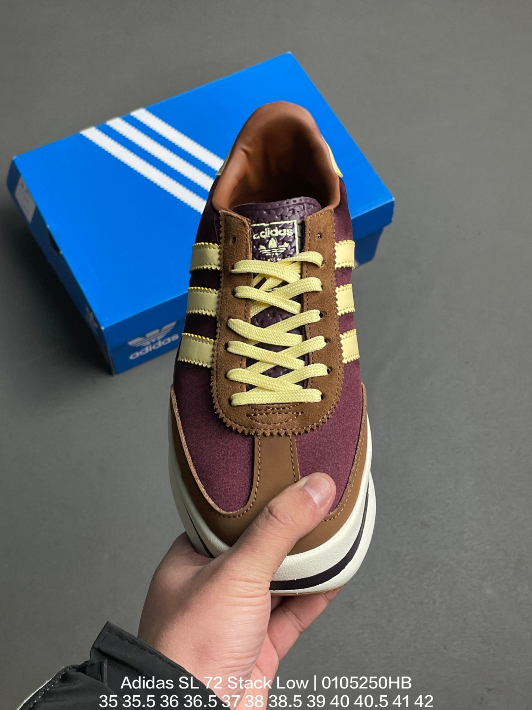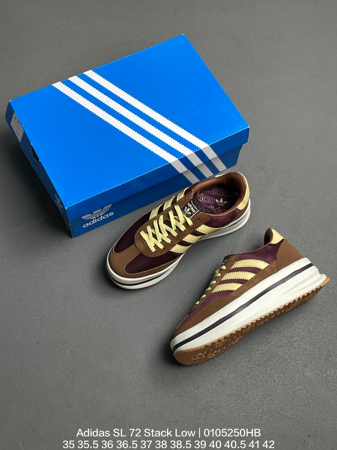 Adidas 阿迪达斯 35⅔ 42女鞋真标半码制 原楦开发版型 采用翻毛皮组合牛津布鞋面材质 内嵌环保海玻璃鞋垫 中底搭载发泡模EVA缓震物料组合外置耐磨橡胶大底复古厚底鞋小个子秋冬必备 阿迪达斯Adidas SL 72 Stack Low 堆叠系列低帮T头德训风松糕厚底休闲运动鞋