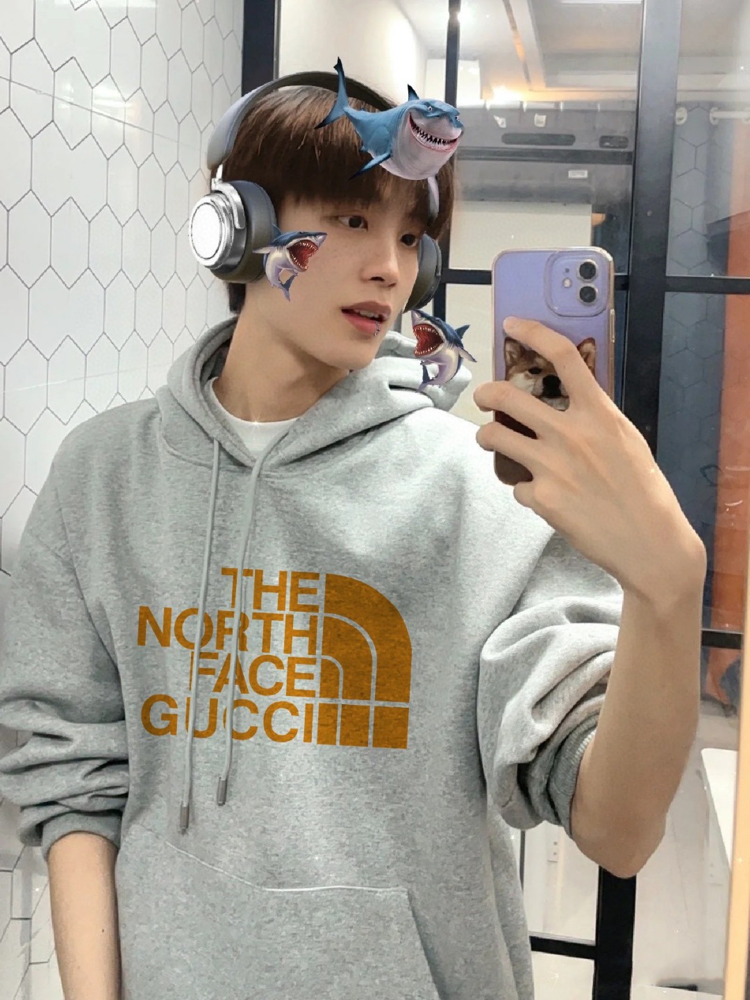 2024 古奇GUCCI最新款胸前大logo联名款男女情侣同款连帽卫衣