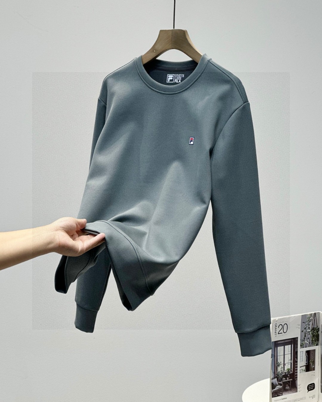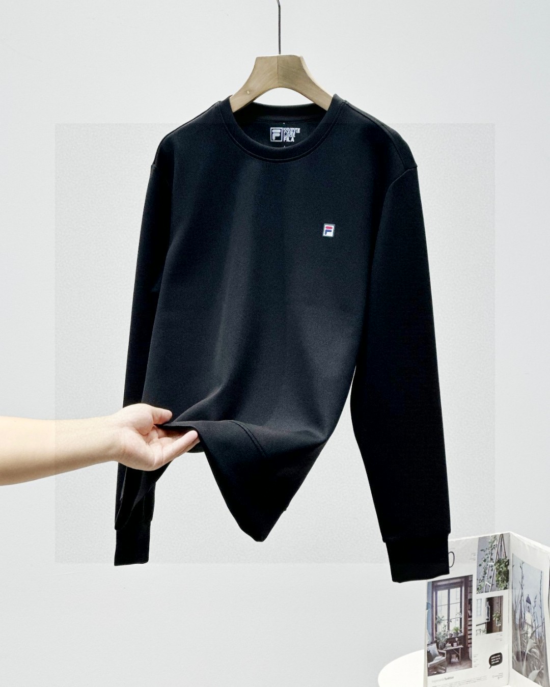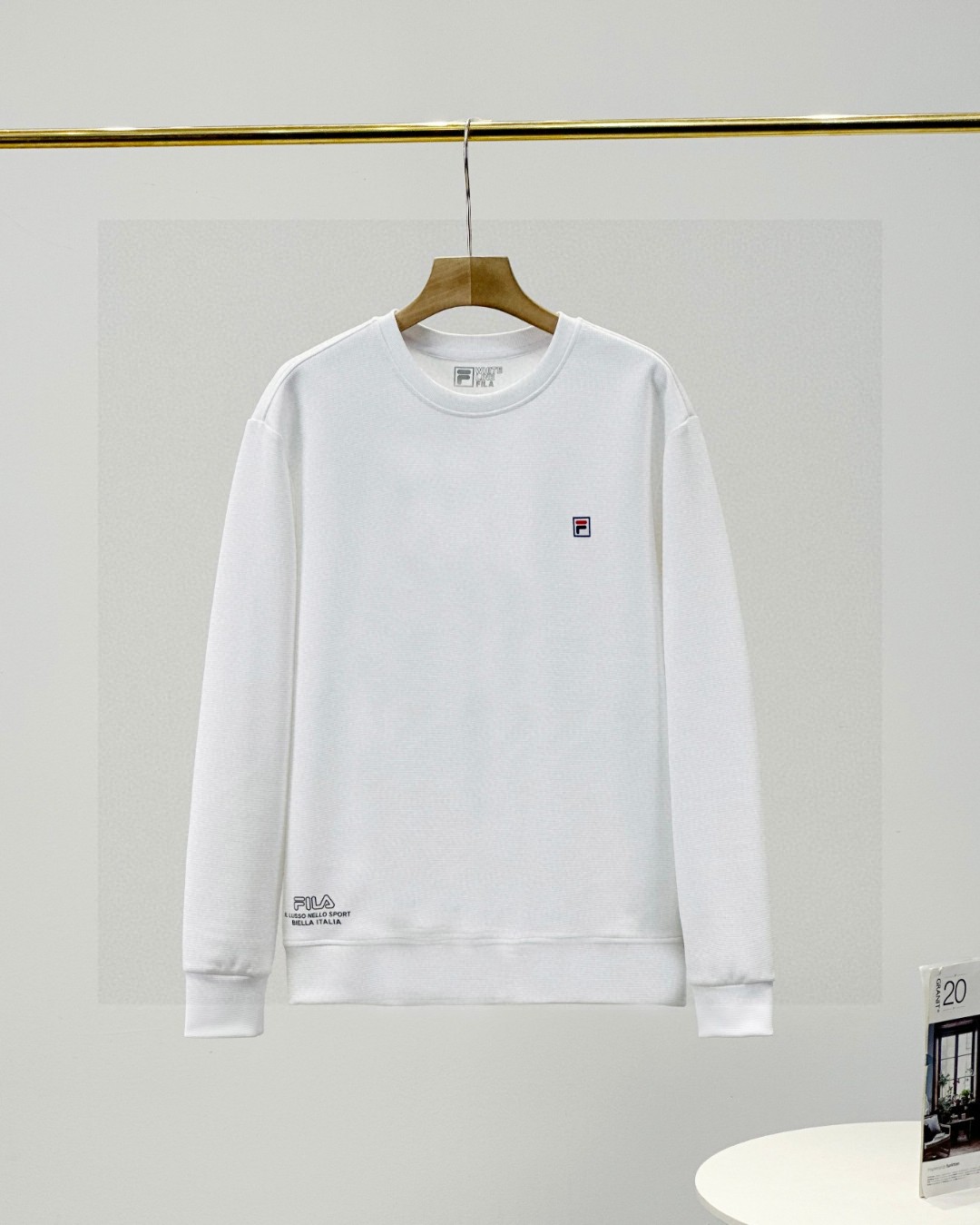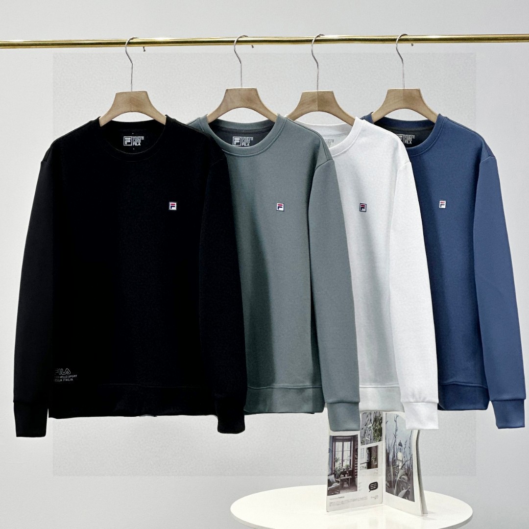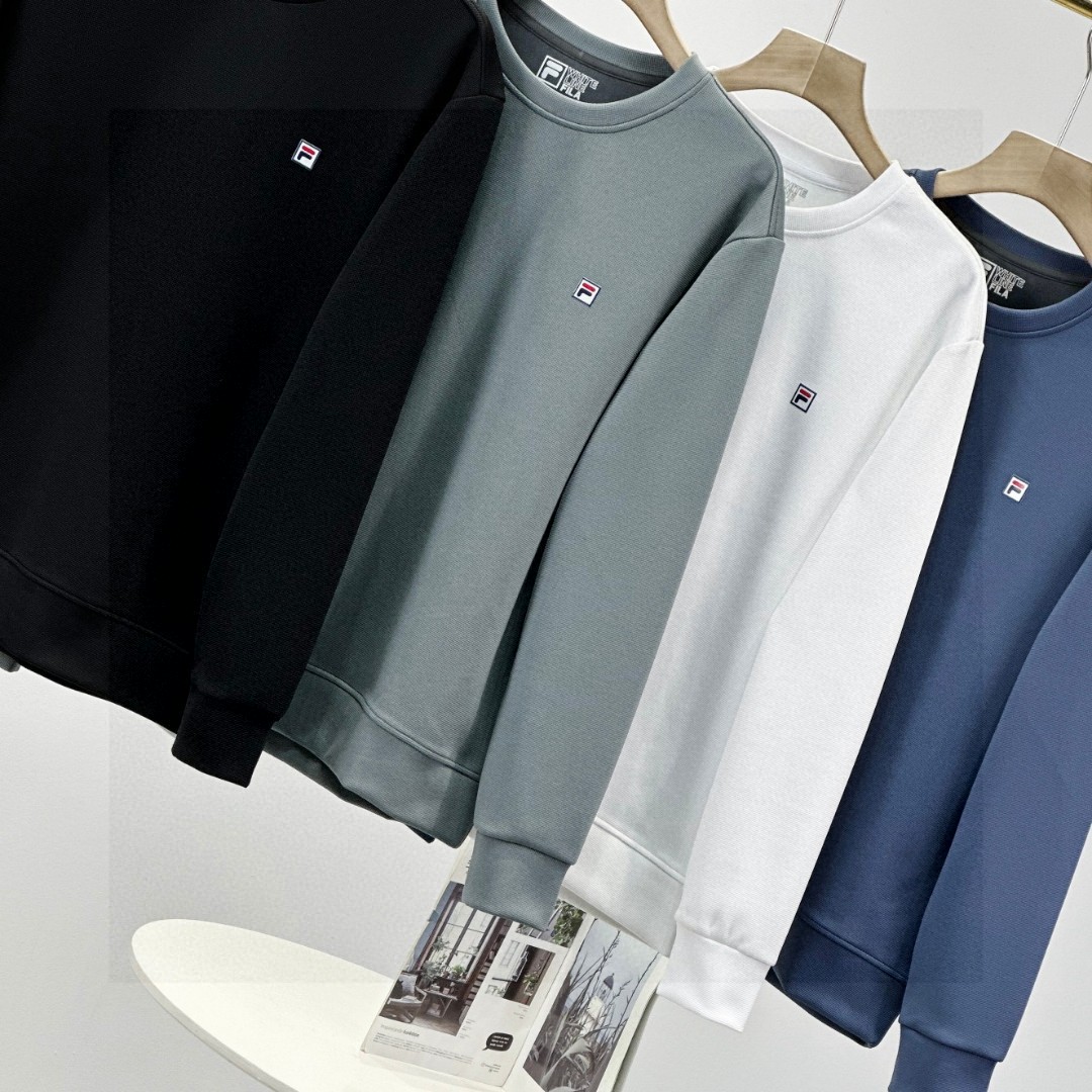 斐乐FILA2026春季秋季新款男女同款四色锦纶提花华夫格面料 加厚套头圆领卫衣