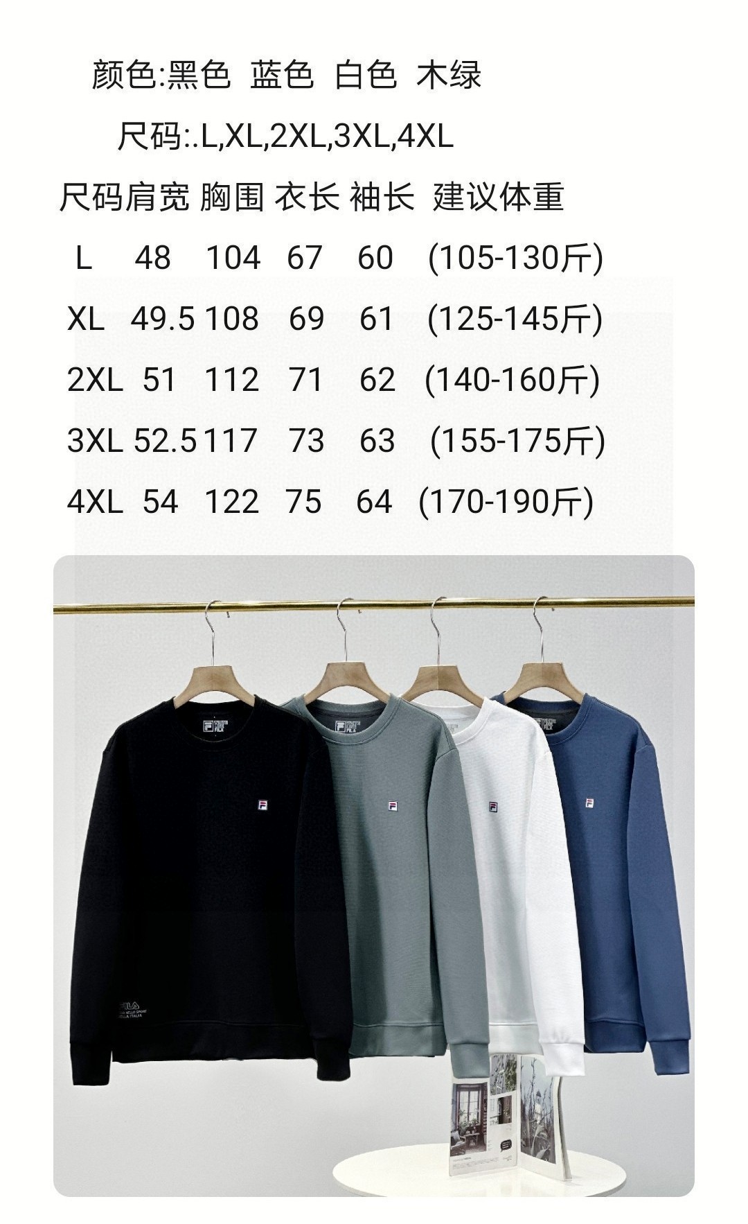 尺码 L XL XXL 3XL 4XL