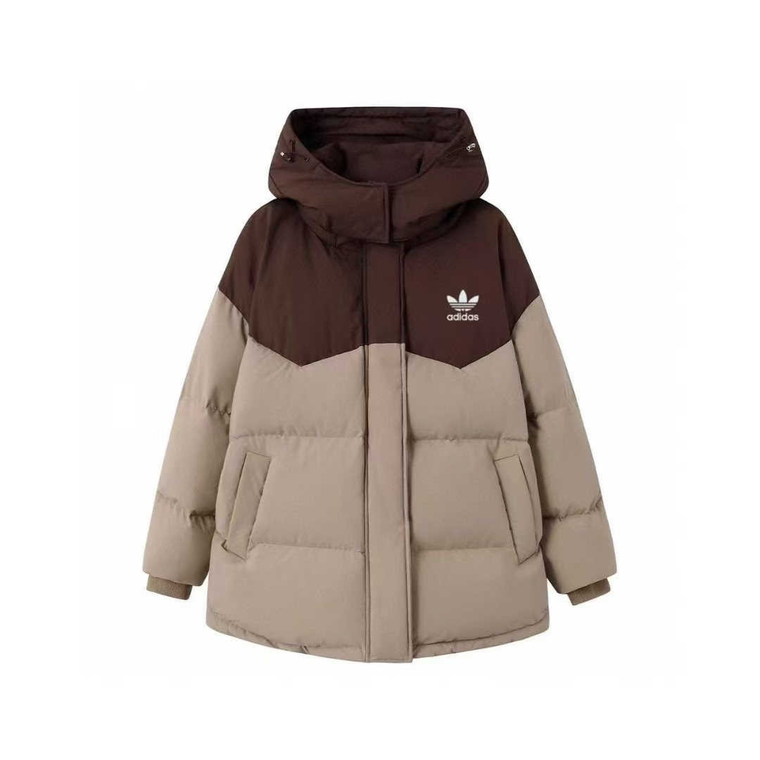 售后不停 大朵90绒白鸭绒拼色Adidas 三叶草阿迪达斯情侣羽绒服