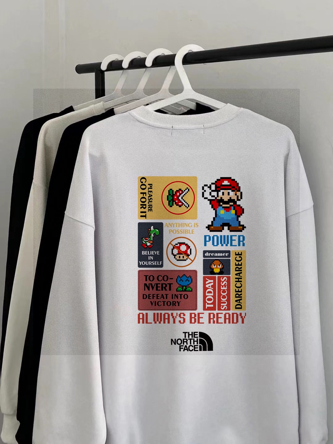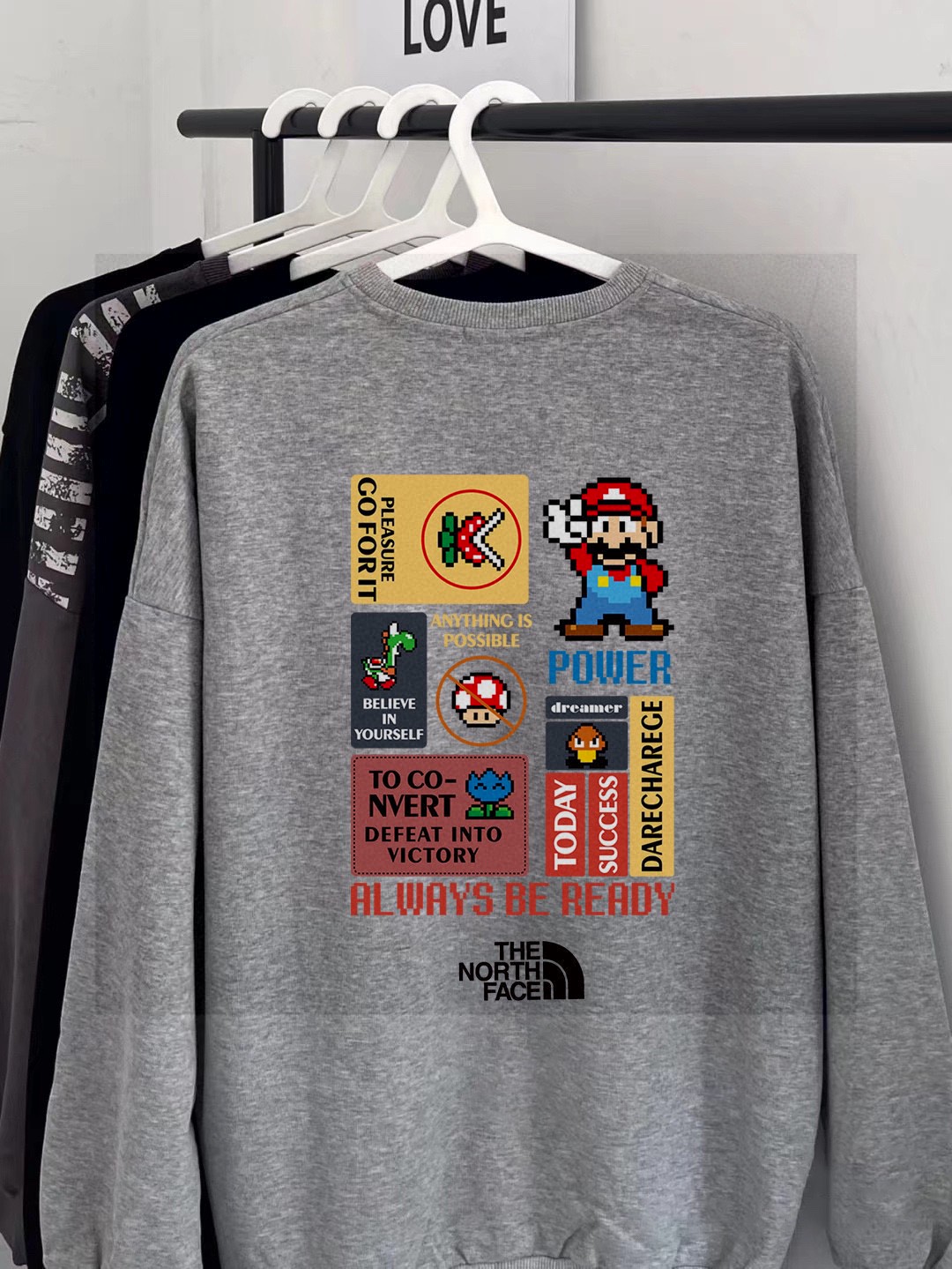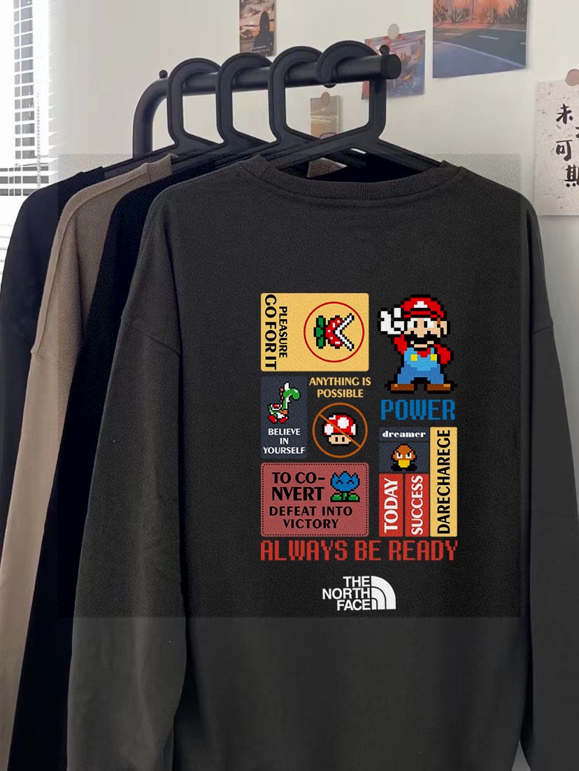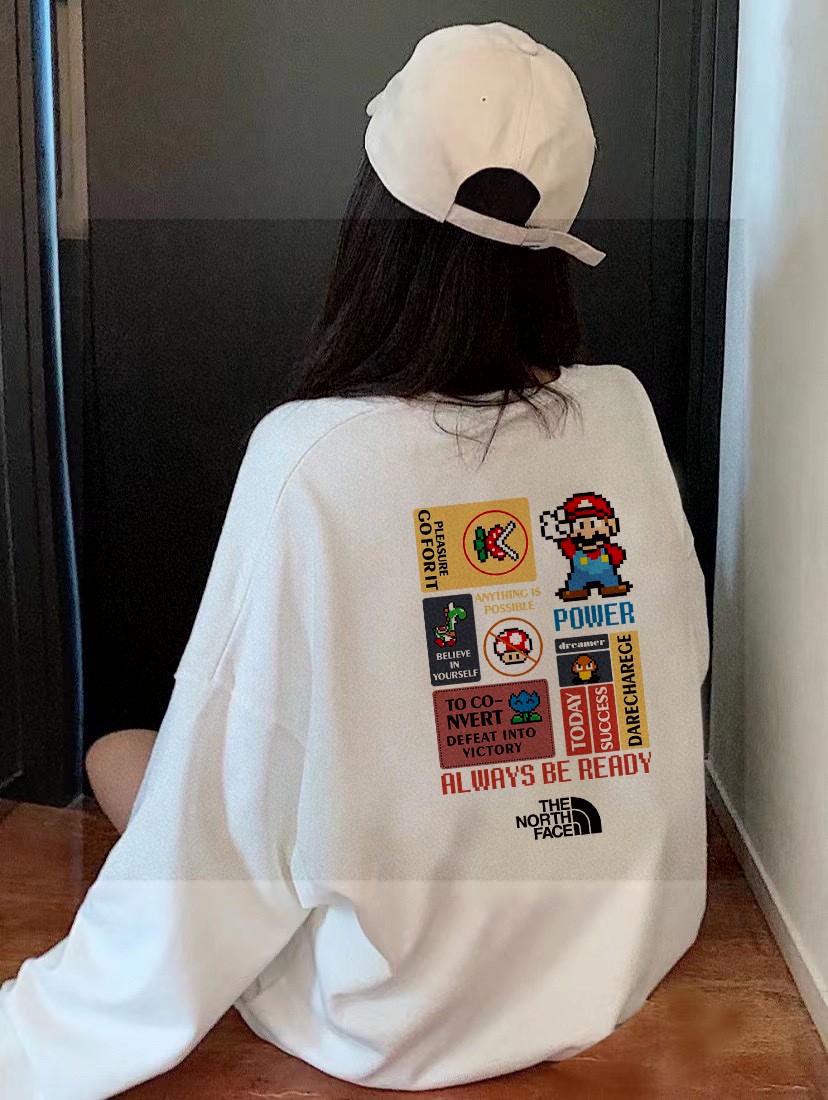 广州十三行服饰 需要加绒 新款纯棉毛圈350克重磅来袭 原标吊牌 北面TNF专柜同步马里奥童年游戏联名系列印花情侣卫衣