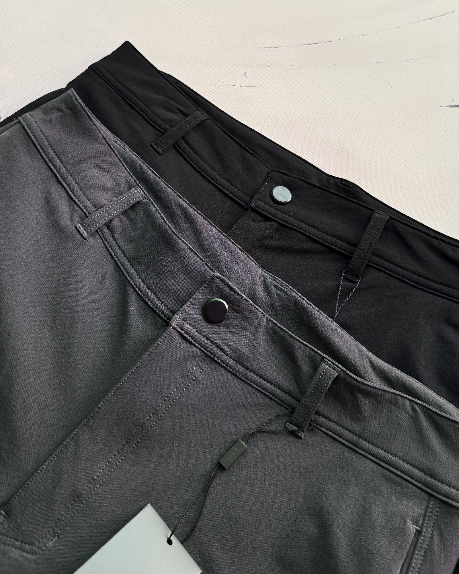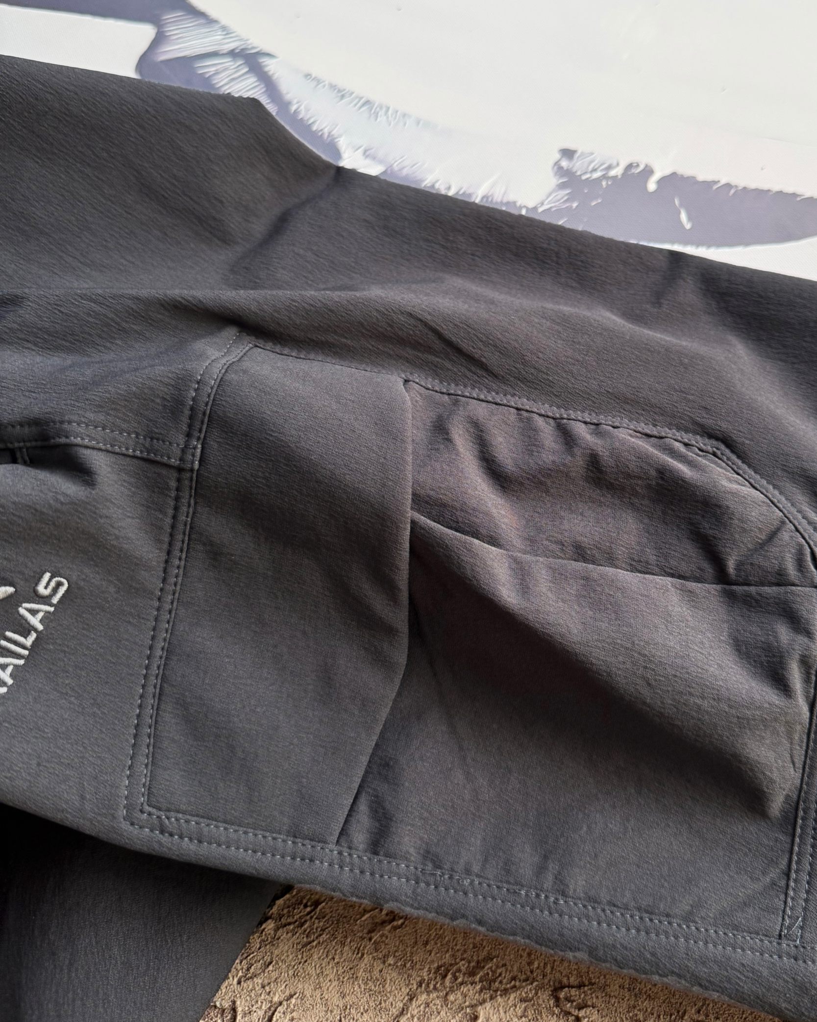 采用四面弹登山布 质感升级 上身不拘束 四面弹力 针码1cm四针 二本针压线 使整条裤子更加耐穿 东丽本公司定制面料 不但拥有登山布本身的防泼水 透气功能 面布反面里面 贴身的位置 更加亲肤 锦纶材质加持 上身透气 排湿