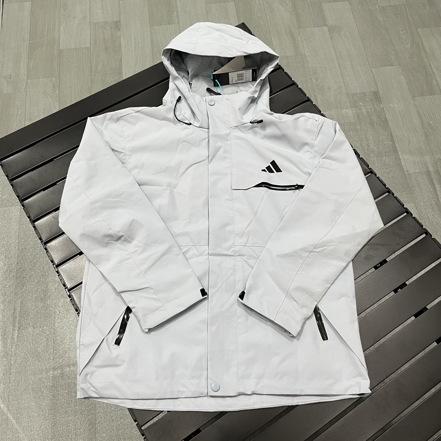 得物品质 阿迪达斯adidas ESSENTIALS HOODED JACKET 时尚休闲百搭连帽 SS25 防水防风冲锋衣 硅胶logo印花轻量连帽 防水防风防泼水冲锋衣 男女同款 卡其色 浅蓝色 黑色 M 4XL
