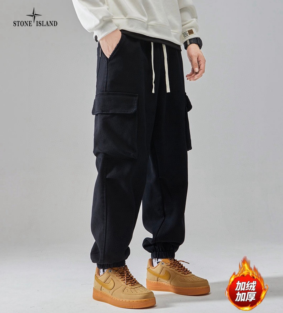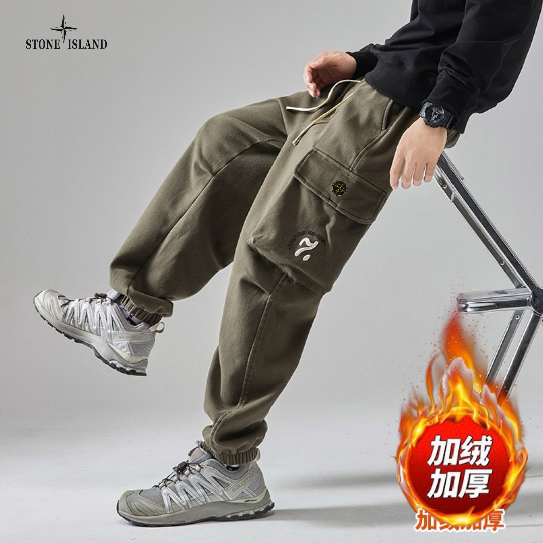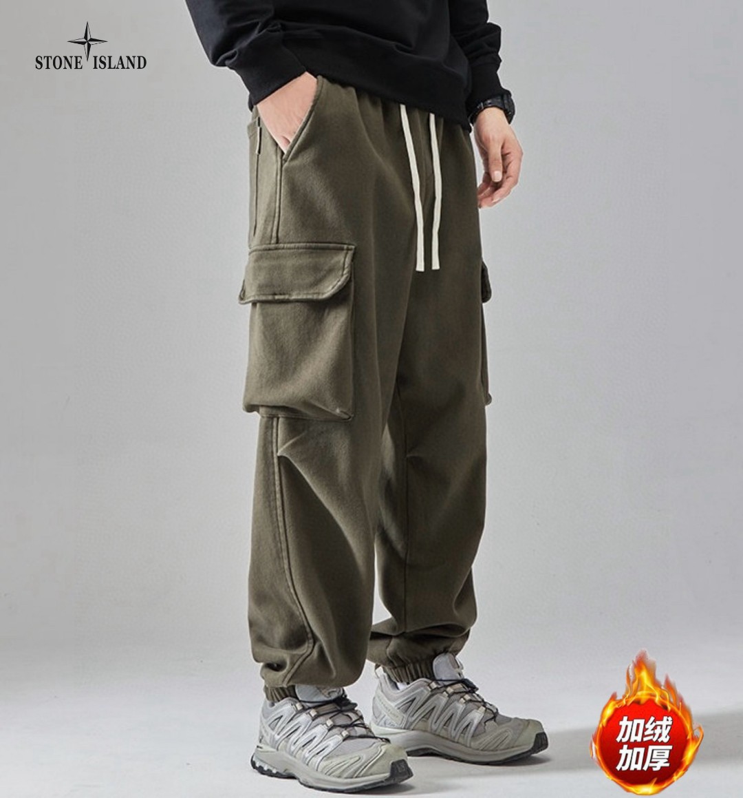 STONE ISLAND石头岛海外版25ss新款两色美式ins工装机能风加绒加厚工装裤