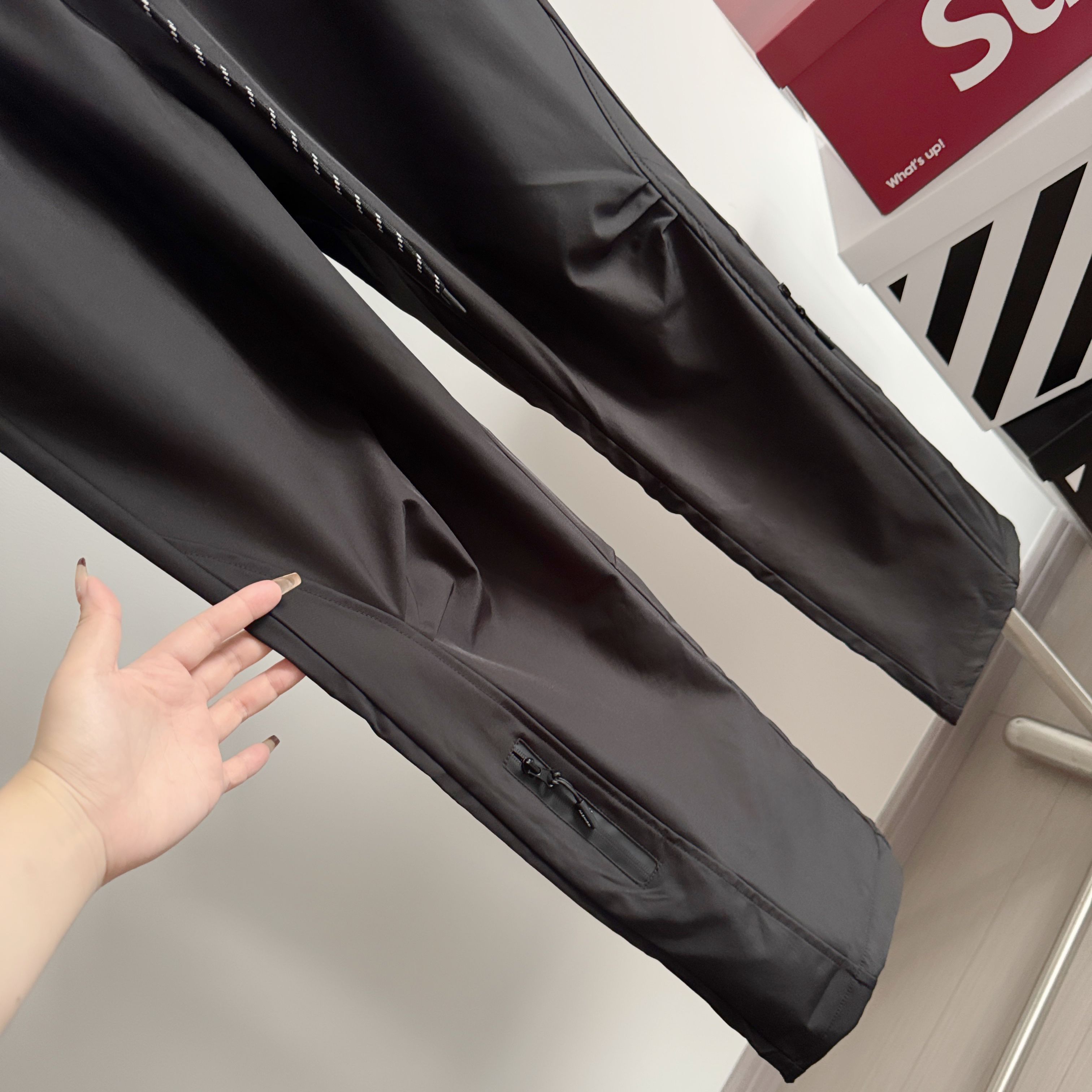 抽绳内置的松紧腰 弹力大 穿着不易勒 适合各种腰围的朋友 而且比起外置抽绳也更美观 隐形拉链口袋 实用且颜值高