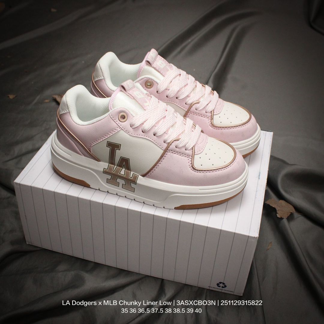 MLB 韩国F F旗下运动品牌 采用荔枝纹纤维革面鞋面材质 全新独立5cm厘米外增高轻质发泡中底组合耐磨橡胶外底片学院穿搭爆款 Korea韩国限定 联乘洛杉矶道奇队LA Dodgers x MLB Chunky Liner Low 学长鞋系列低帮老爹风轻量增高厚底百搭休闲运动慢跑鞋 3ASXCBO3N