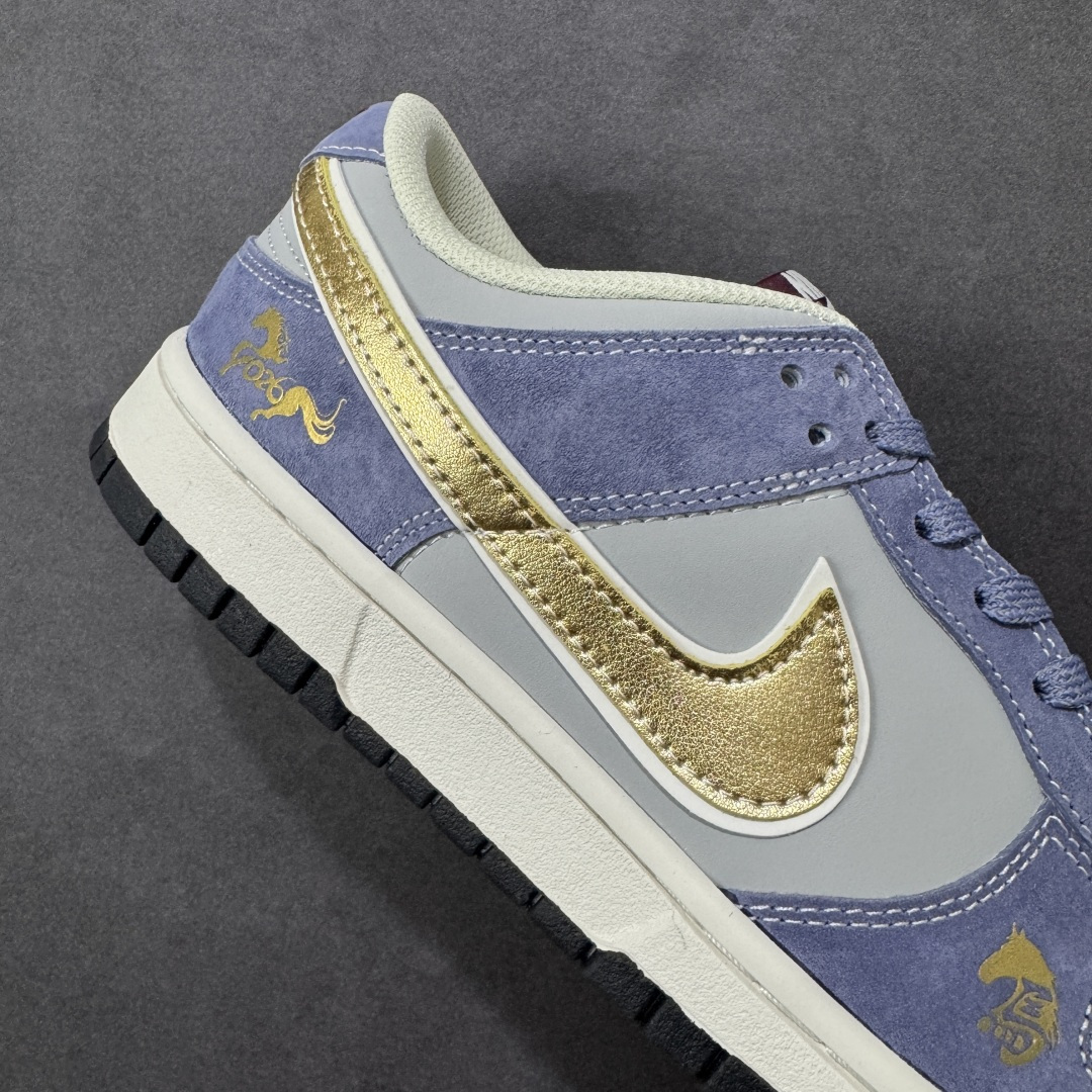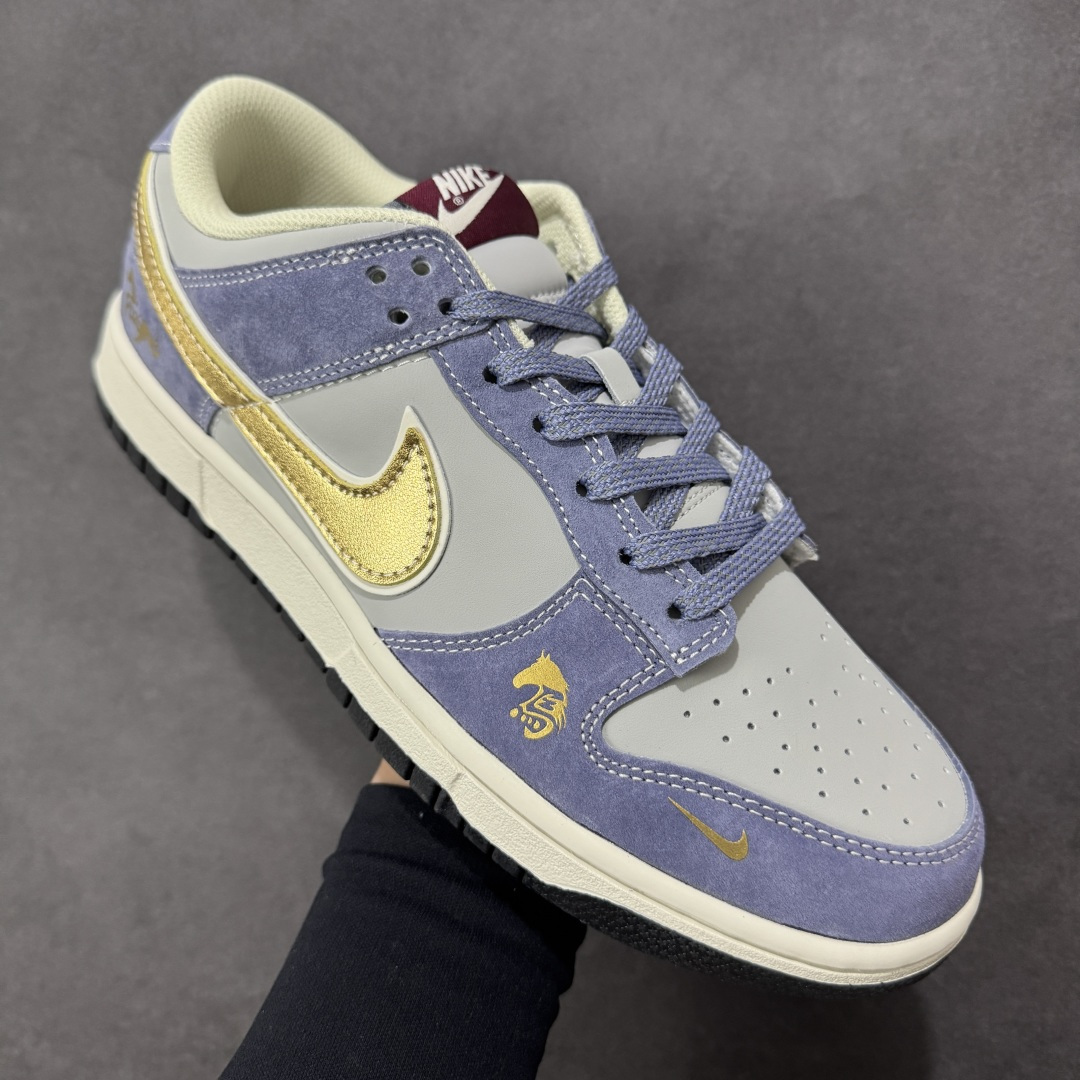 定制版 美到窒息 Nike SB DUNK LOW马年限定款直接戳中审美 灰紫麂皮温柔又高级 金色Swoosh镶边瞬间提亮 烫金马纹 金属小马挂饰把年味拉满 经典低帮鞋型上脚超显腿细 软弹中底暴走无压力 潮人开春搭衣的王炸款就是它