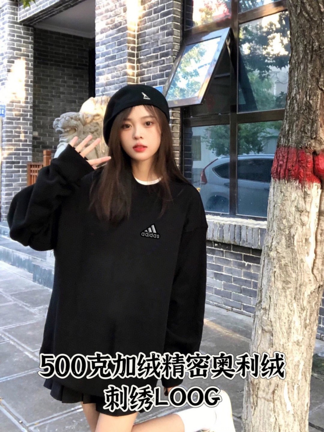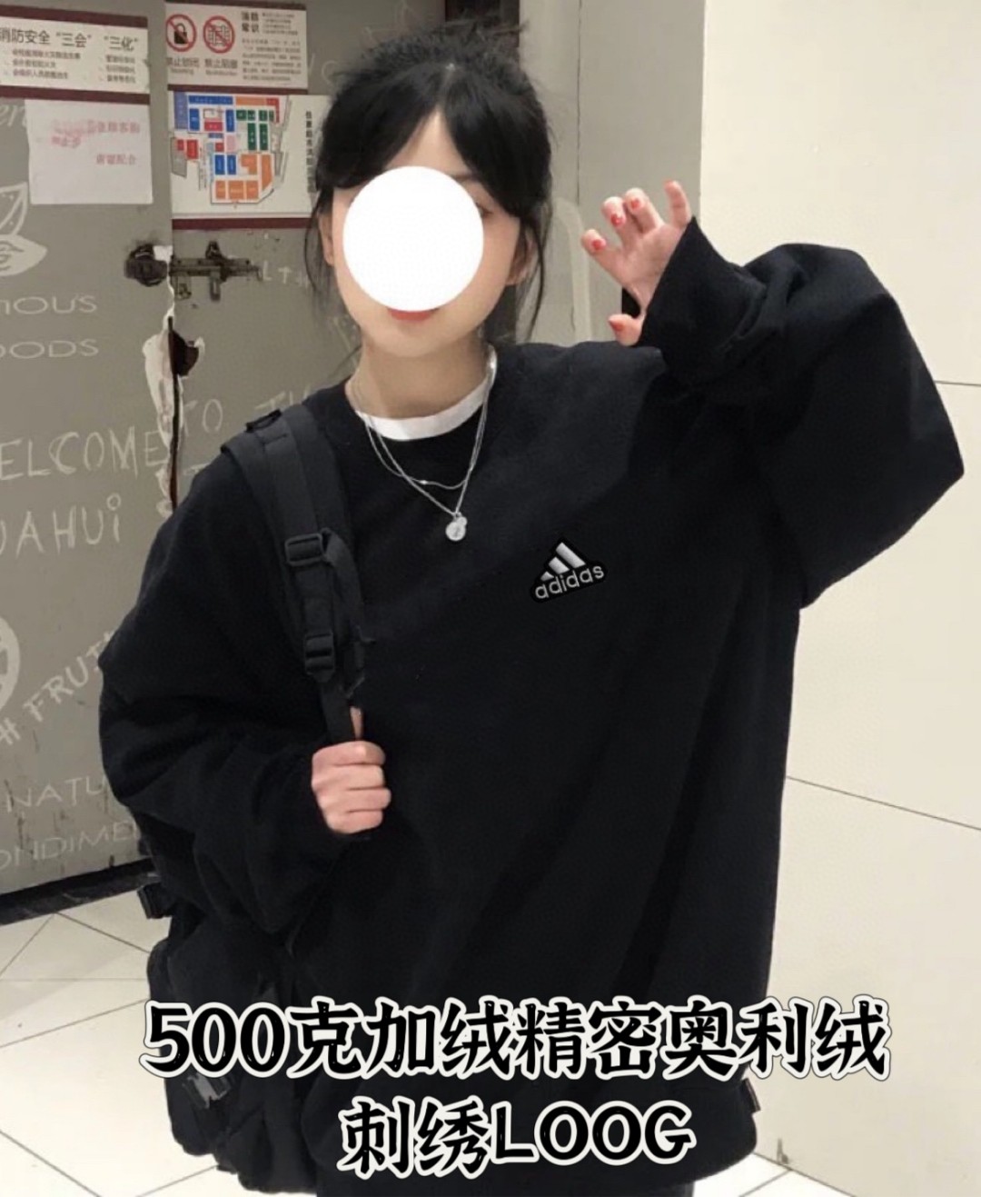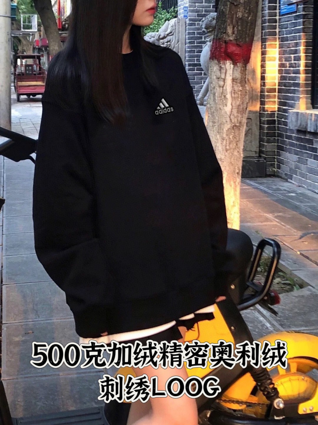 售后不停 原版质量 500克奥利绒阿迪达斯Adidas500克加绒圆领卫衣情侣款男女同款黑色圆领卫衣