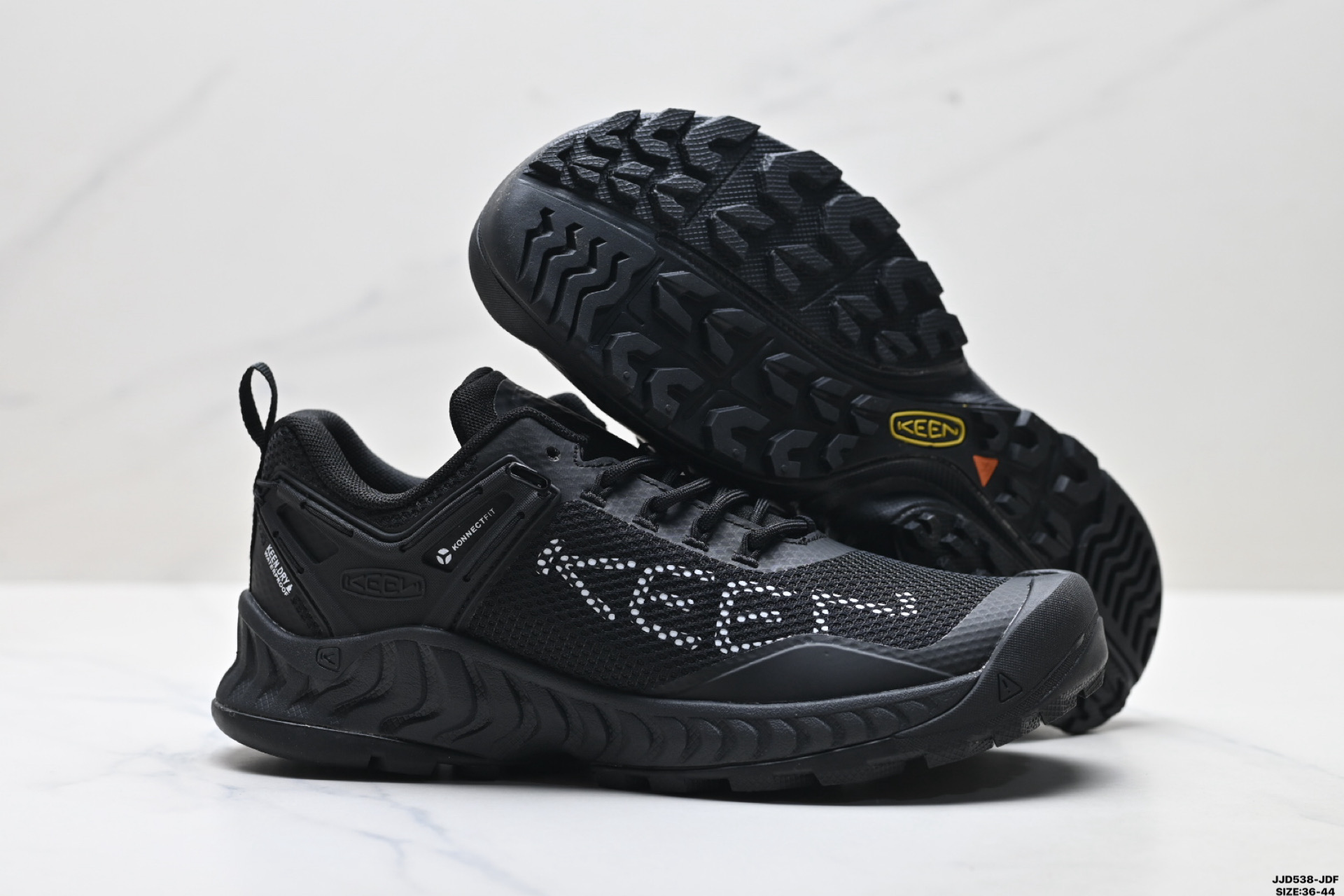 网面与TPU覆盖增加耐久性舒适透气的纺织衬里提升穿着体验KEEN DRY防泼水 透气膜包裹着简约时尚造型的鞋身使穿着者可以在山野间自由穿梭张扬现代人外向进取的生活态度KEEN ALL TERRAIN全地形橡胶外底 结合4MIM多向凸起纹路 一KEEN ALL TERRAIN全地形橡胶外底 结合4MM多向凸起纹路 带来出色的耐磨性和更强的抓地力 轻质EVA中底 出色的缓震性能 不管是户外徒步还是都市通勤 都行走于舒适之中