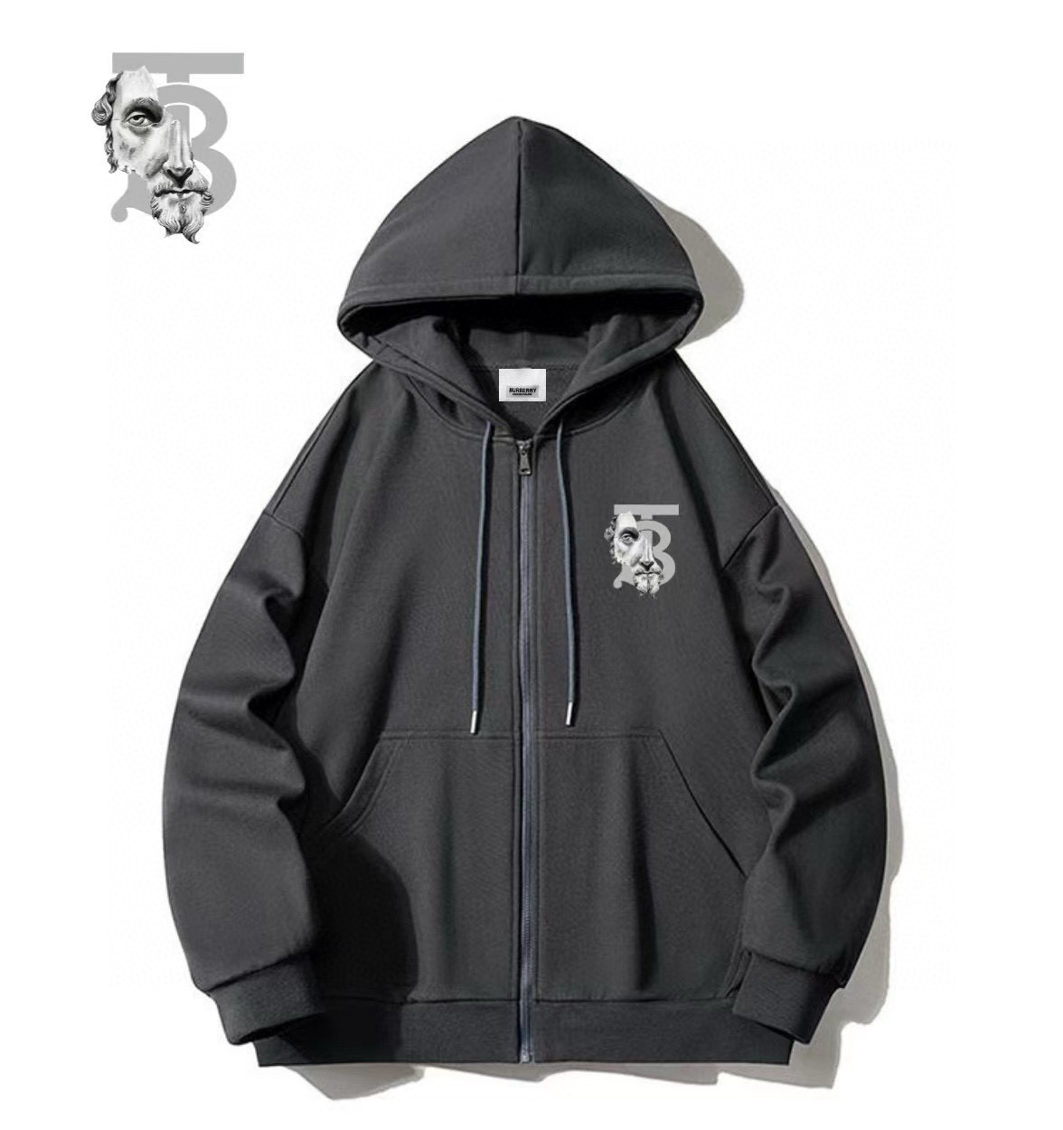 连帽开衫篇 防伪标识版拉链连帽开衫毛圈360克原标吊牌 巴宝莉BURBERRY人脸基础款连帽开衫卫衣落肩款情侣同款 爆款面料
