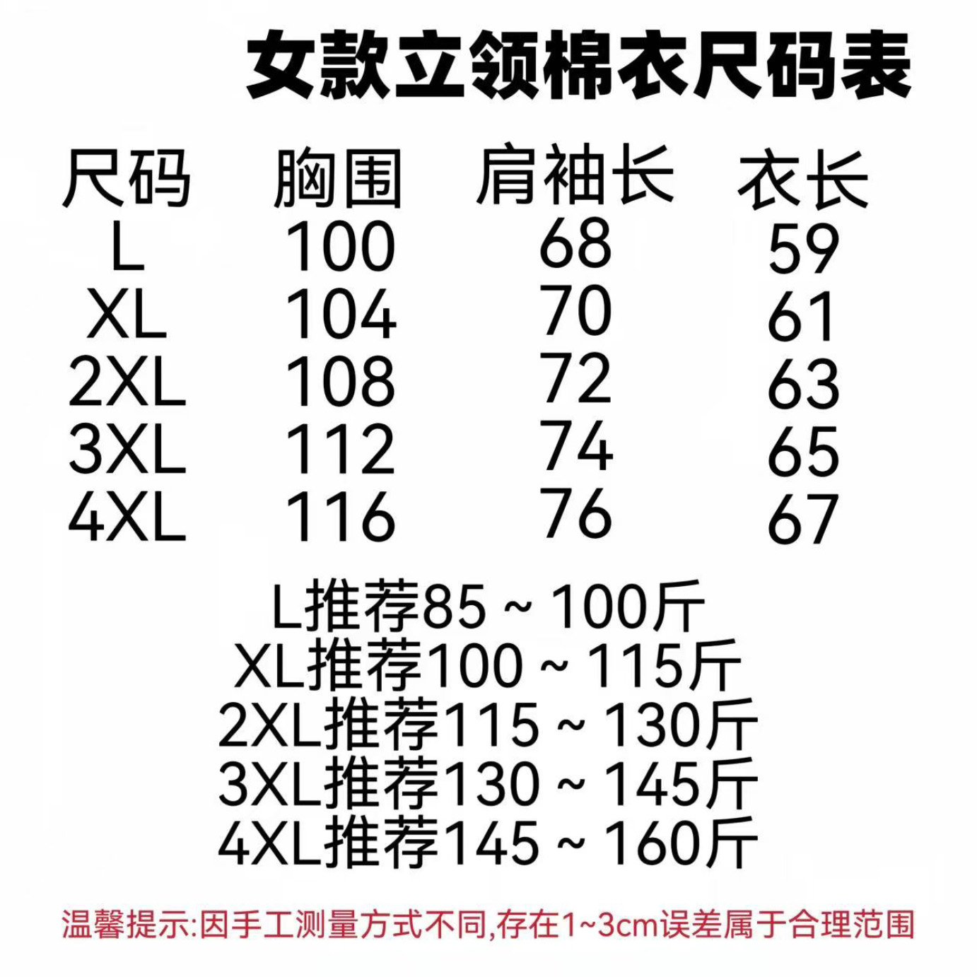尺码 L 4XL 图九尺码表