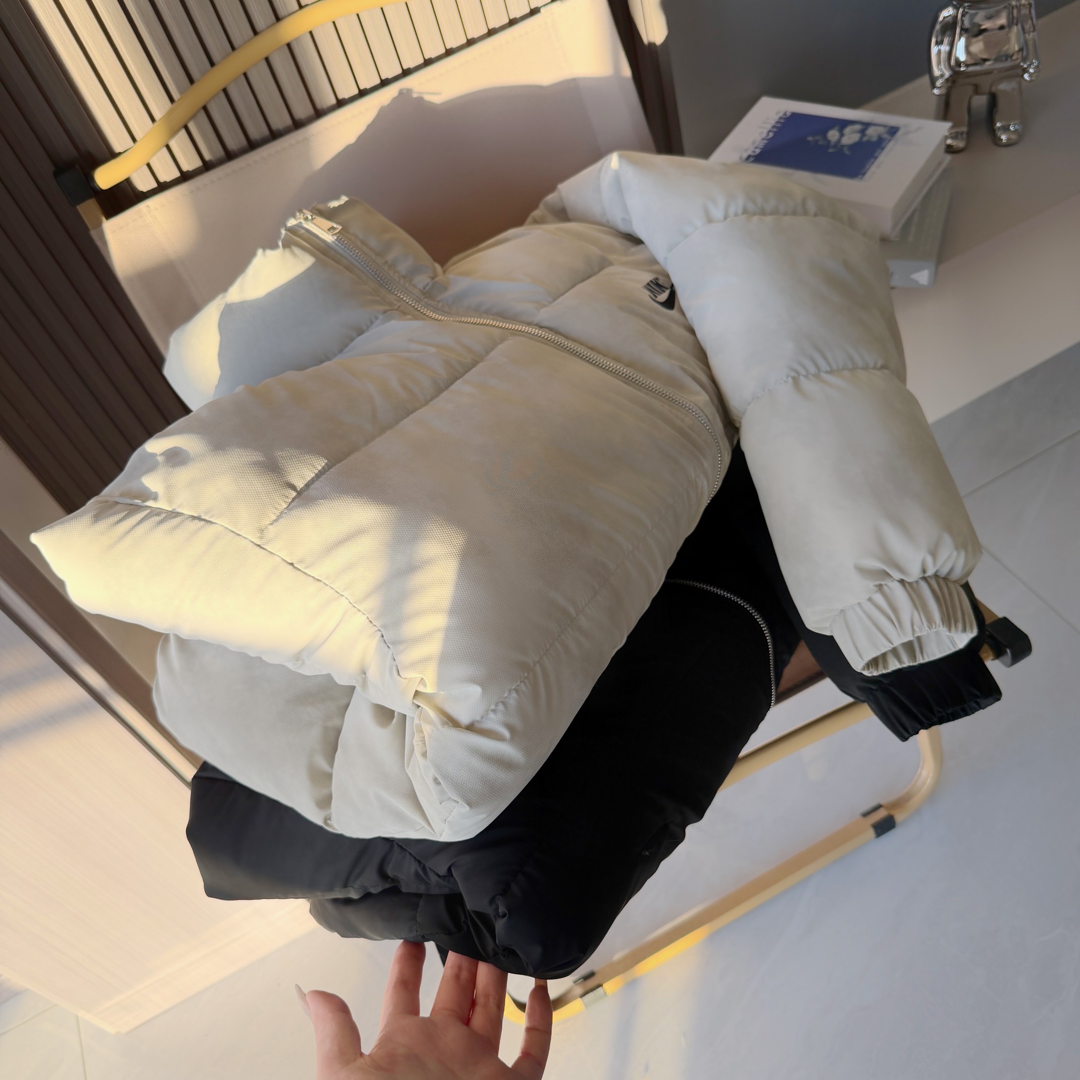一件过冬 而最近这款太好看了 风度与温度并存 这个款式真真的帅啊 保暖修身版型 拒绝臃肿感 包裹着整个上半身 就算穿上厚厚的保暖衣也不显胖 搭配牛仔裤 黑色短靴 贝雷帽 围巾都很时尚 去朋友家玩耍 脱掉羽绒服就能轻松驾驭 温暖的季节也能有冬天的质感 眼看得到的面料 棉布内里 里外两层舒适 温暖 没有异味 穿着柔软 晚上睡觉盖肚子也可以 羽绒棉填充 抗寒保暖 上身舒适帅气百搭 胸前简约小logo设计 轻松好驾驭