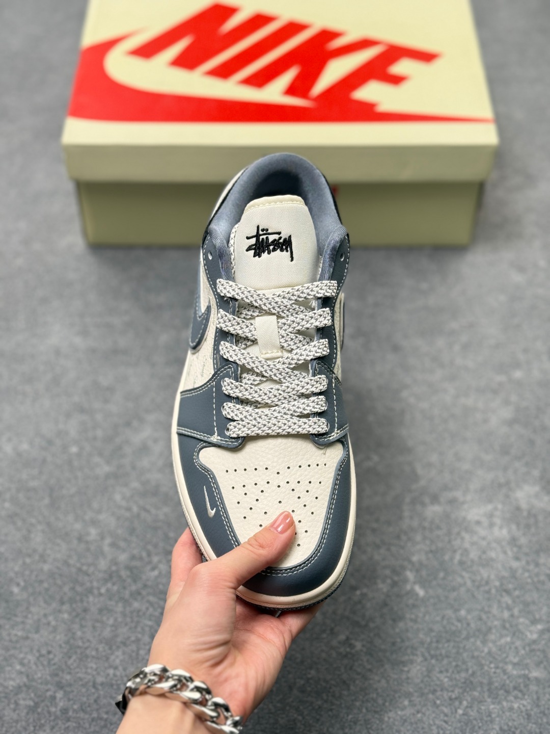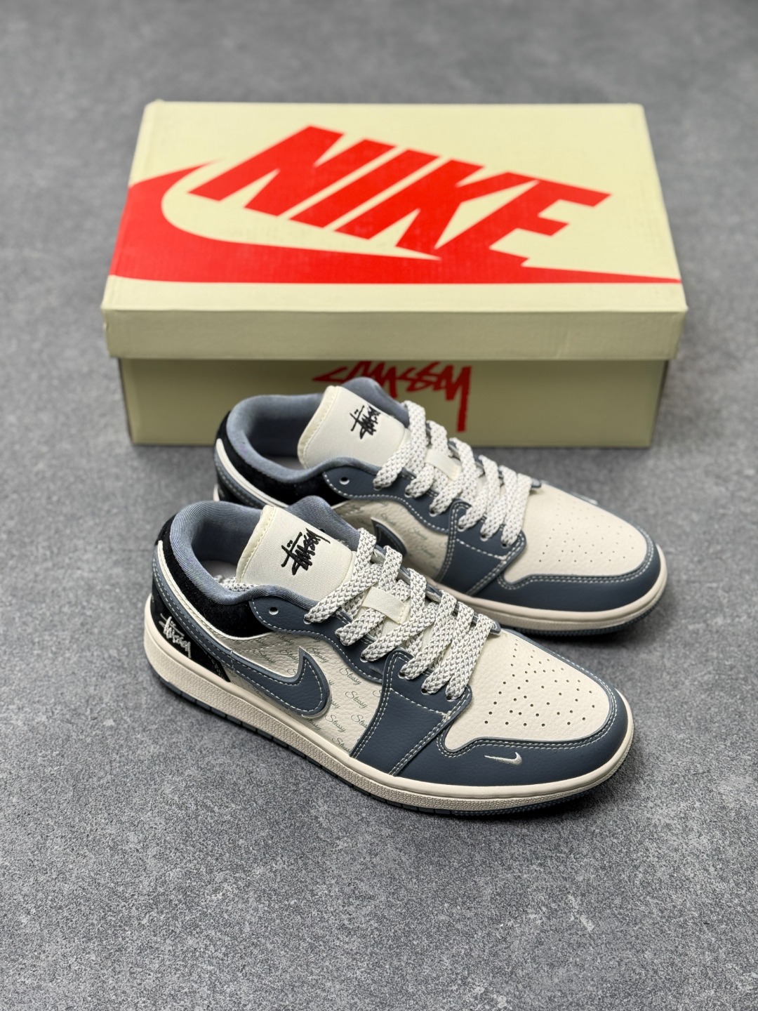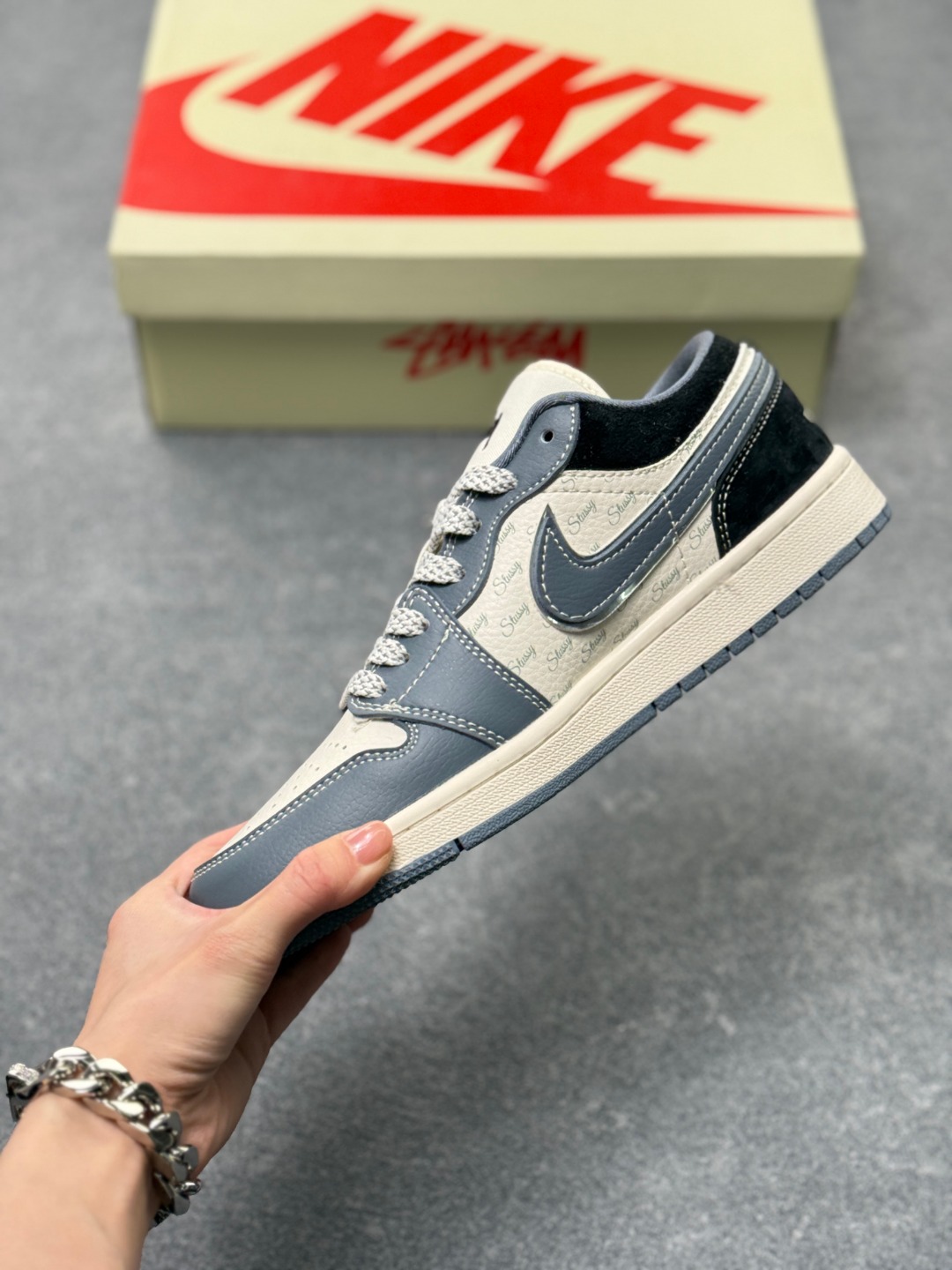 Air Jordan 1 Retro Low x Stussy 米蓝黑小钩满天星