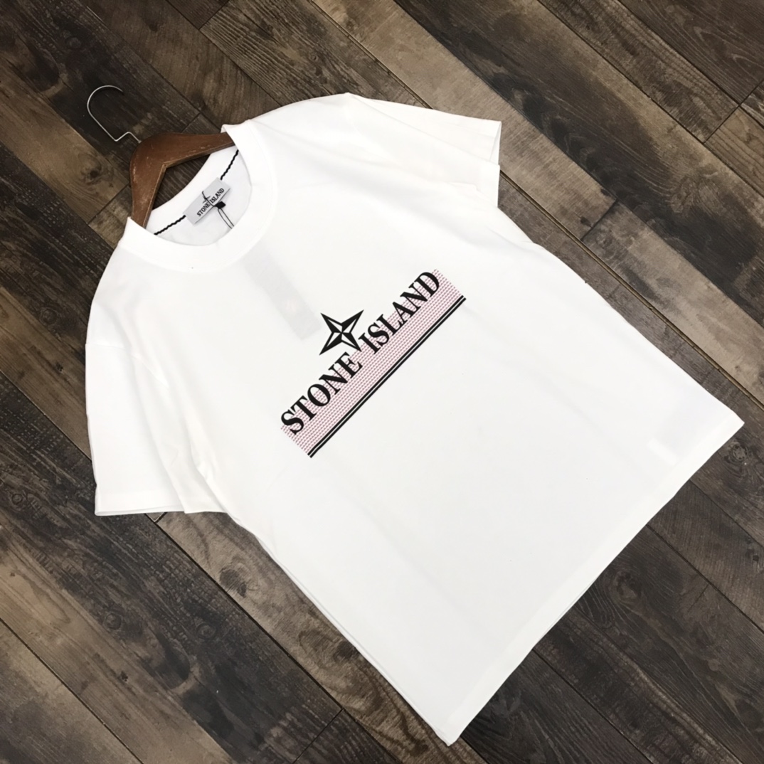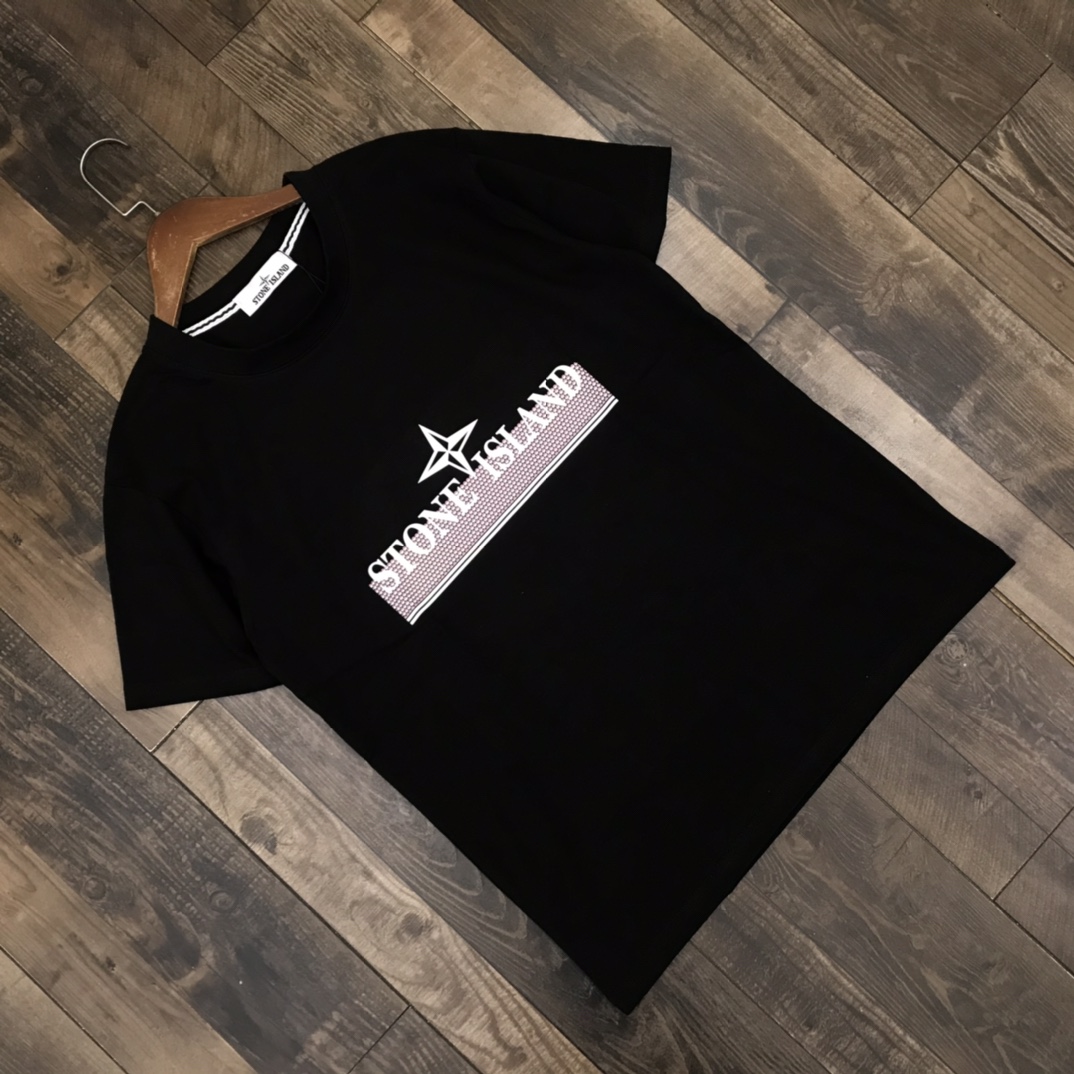 夏款 发 好货上新 石头岛虚幻重影十字logo印花短袖T恤 雨花 面料采用260克纯棉双纱食毛面料 双线二本针压线 久洗不变形 进口3D印花 不掉色 不开裂 双联吊牌水洗 原包装 颜色 黑 白 碳灰 尺码 M XXL 详见图9