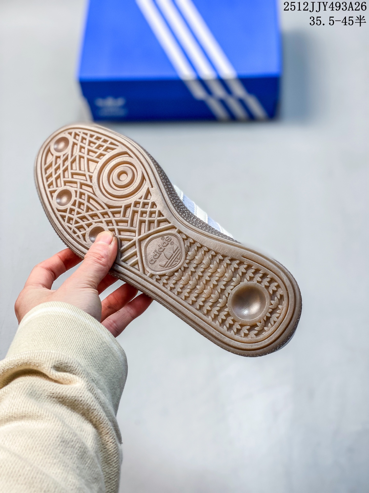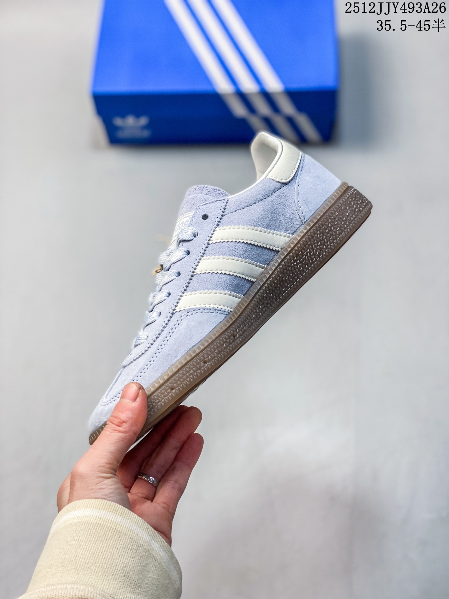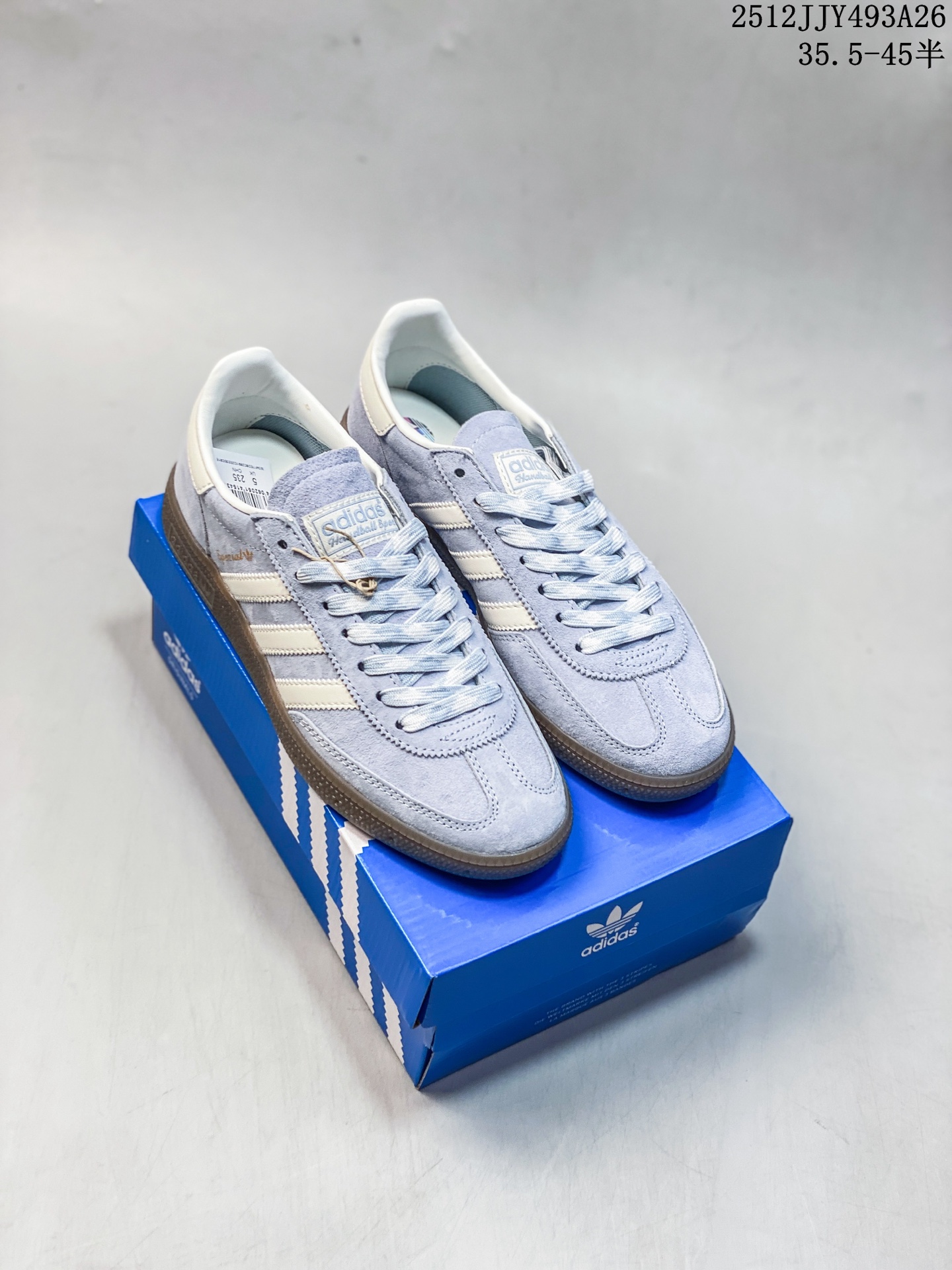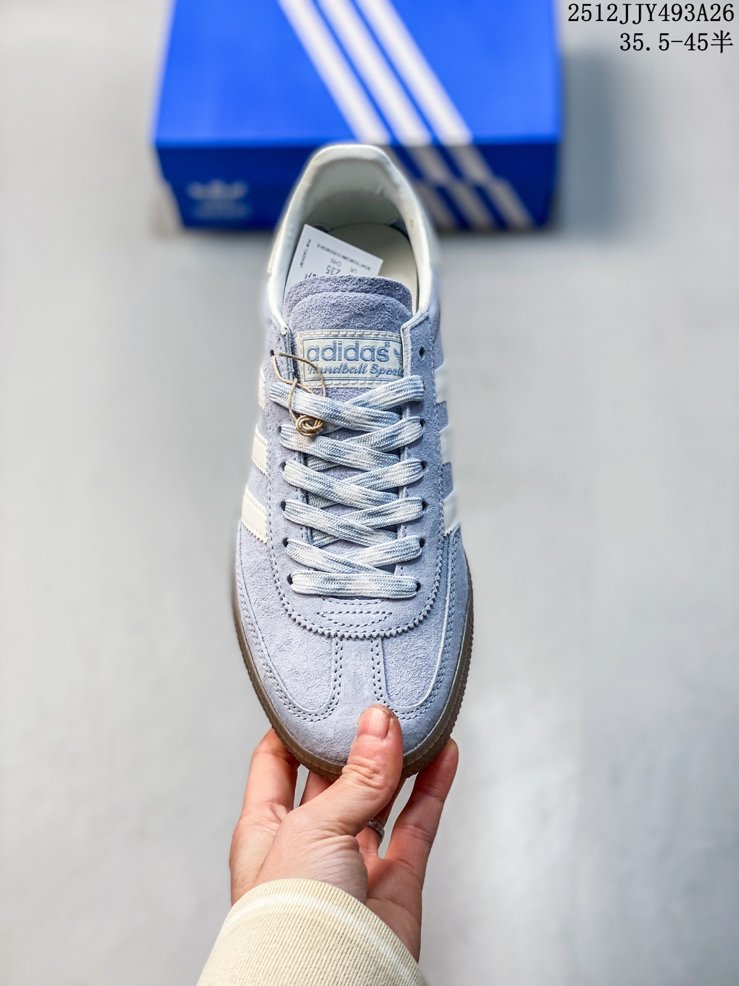 阿迪达斯 Adidas HANDBALL SPEZIAL 低帮三叶草学院风复古休闲板鞋 德训鞋 橡胶底柔软皮革拼接经典运动鞋板鞋 圆头 缝合拼接设计 正面绑带 鞋舌部位附有标贴 经典三条杠装饰鞋侧 承载青春情怀的板鞋 品牌辨识度清晰 牛筋耐磨大底