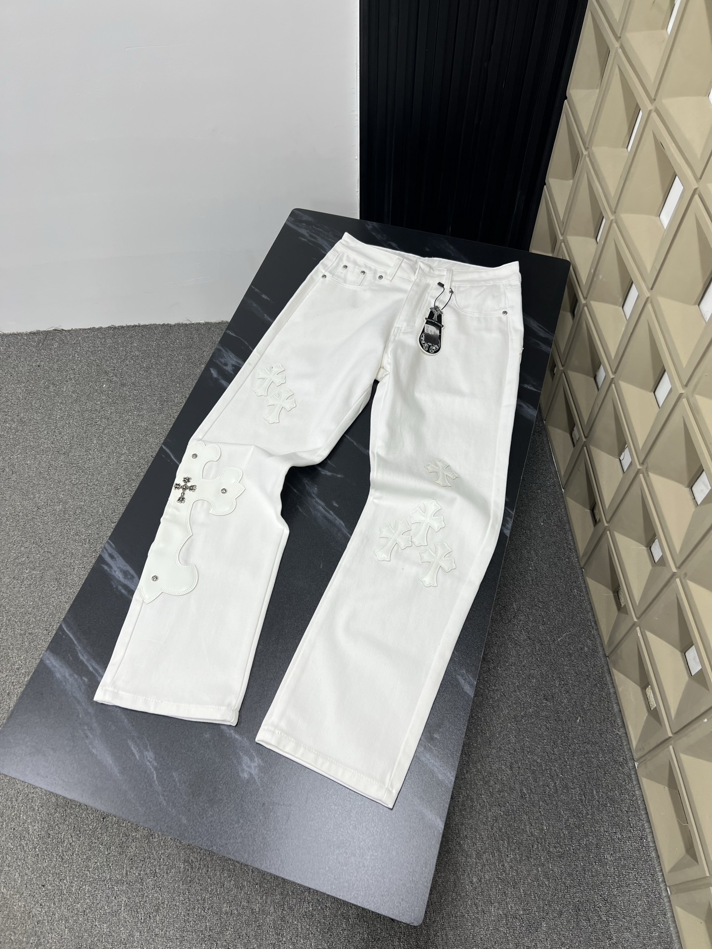 克罗心2024新款十字架蓝粉贴皮水洗牛仔裤 362933