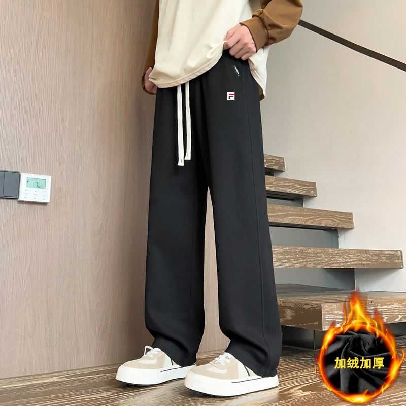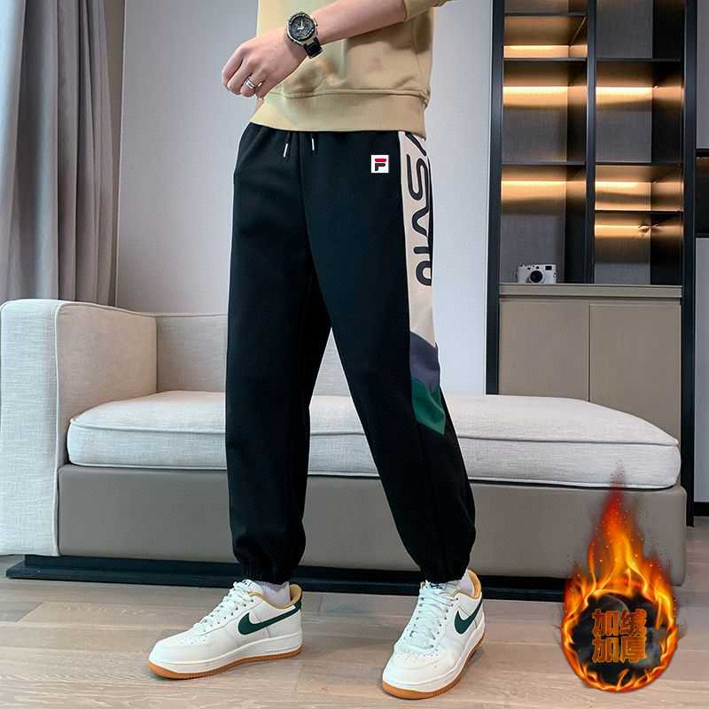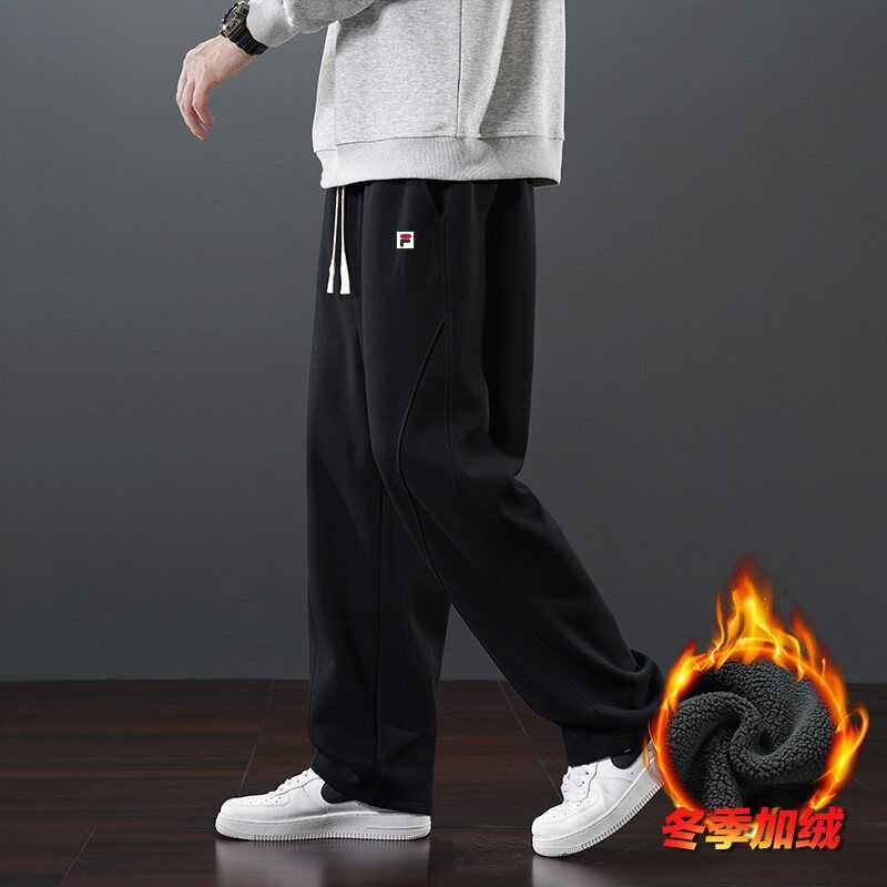 加绒加厚 FILA 斐乐加绒加厚情侣纯色拼接直筒卫裤