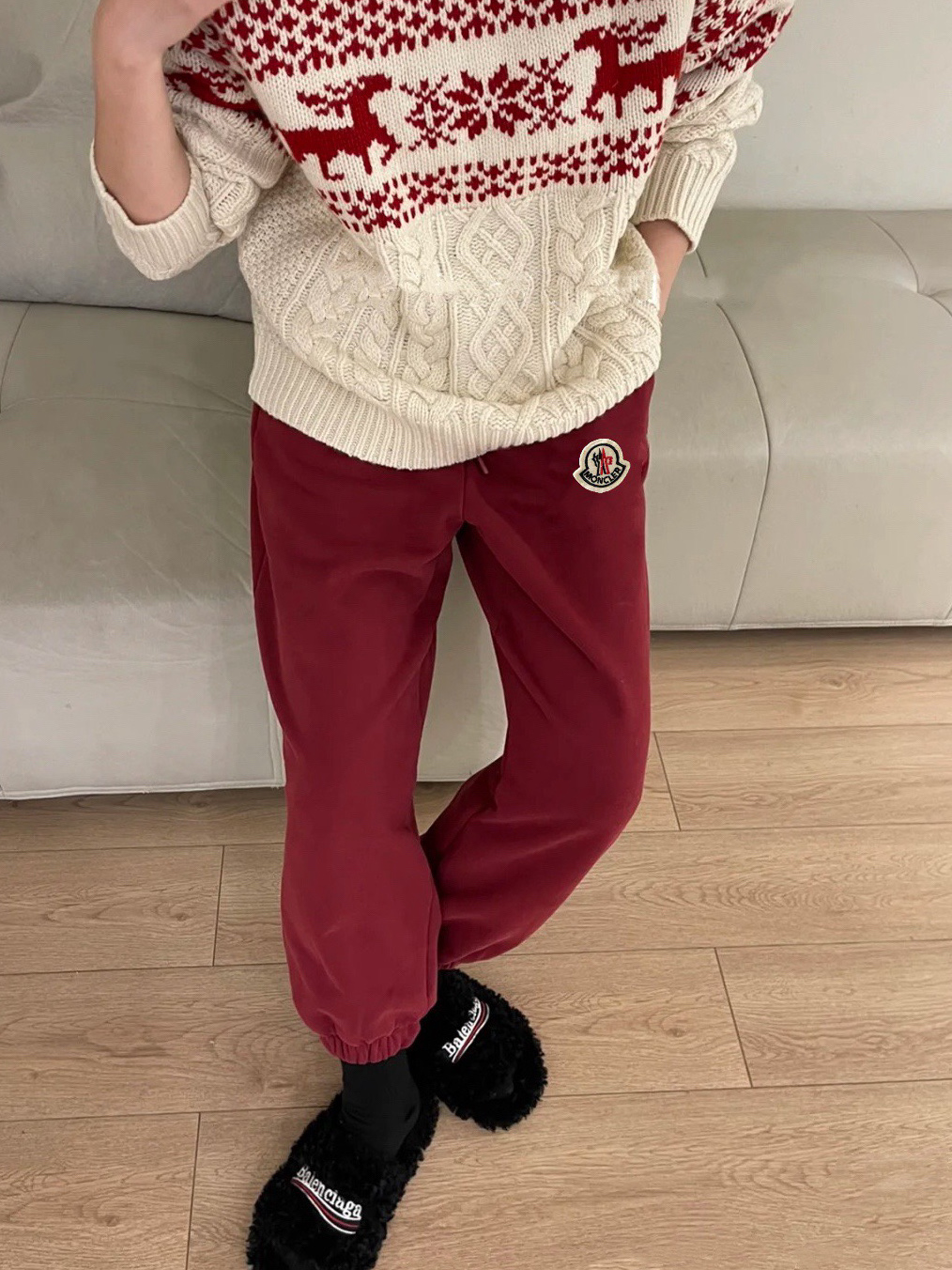𝗠𝗼𝗻𝗰𝗹𝗲𝗿蒙口25SS圣诞限定红色加绒束腿休闲卫裤